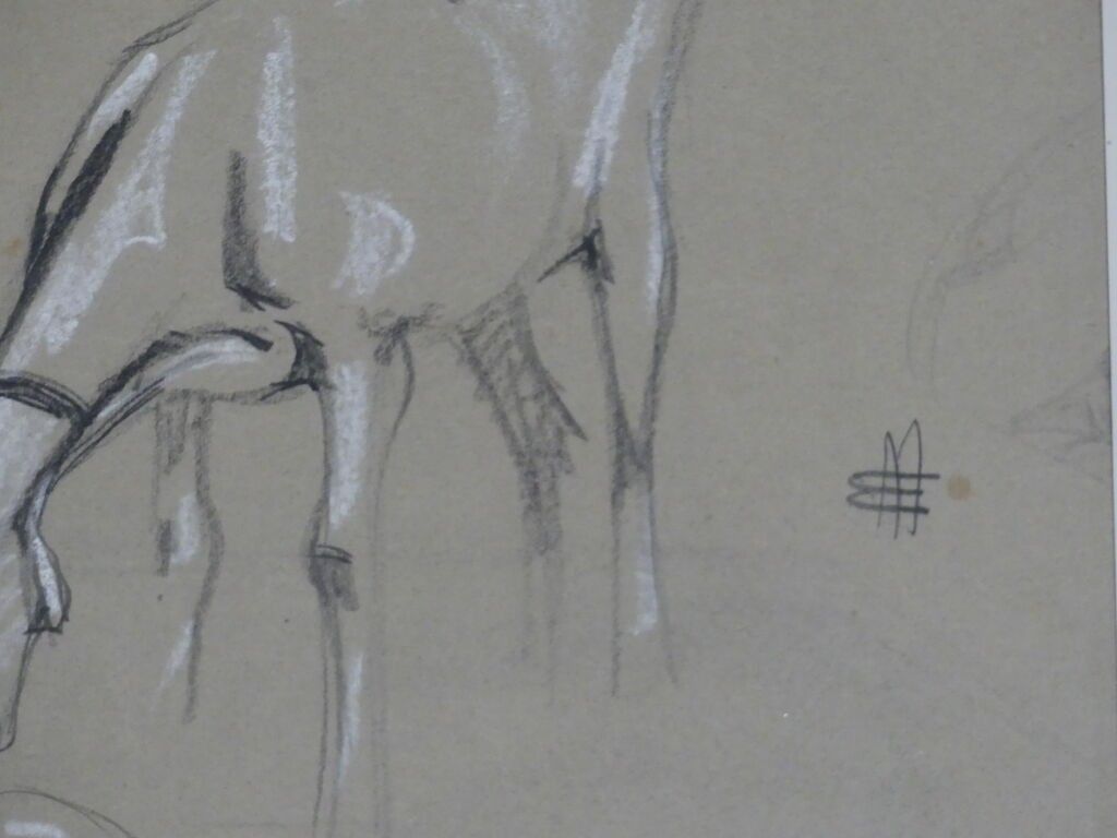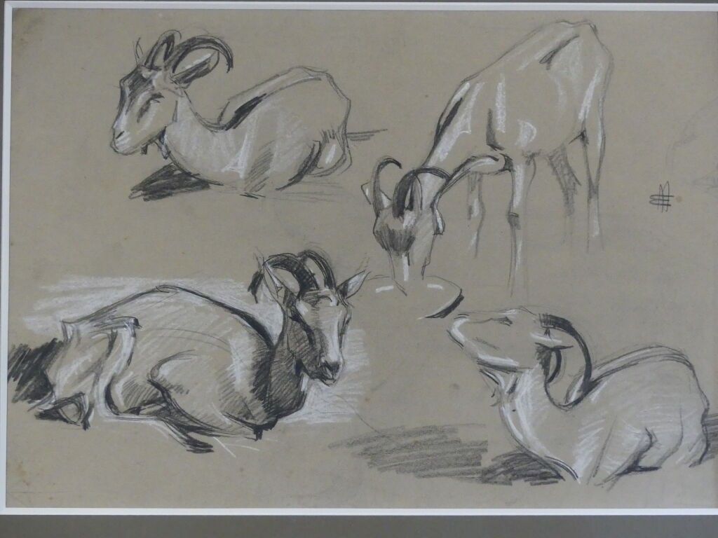 Study of goats, charcoal and chalk, monogrammed on the right.