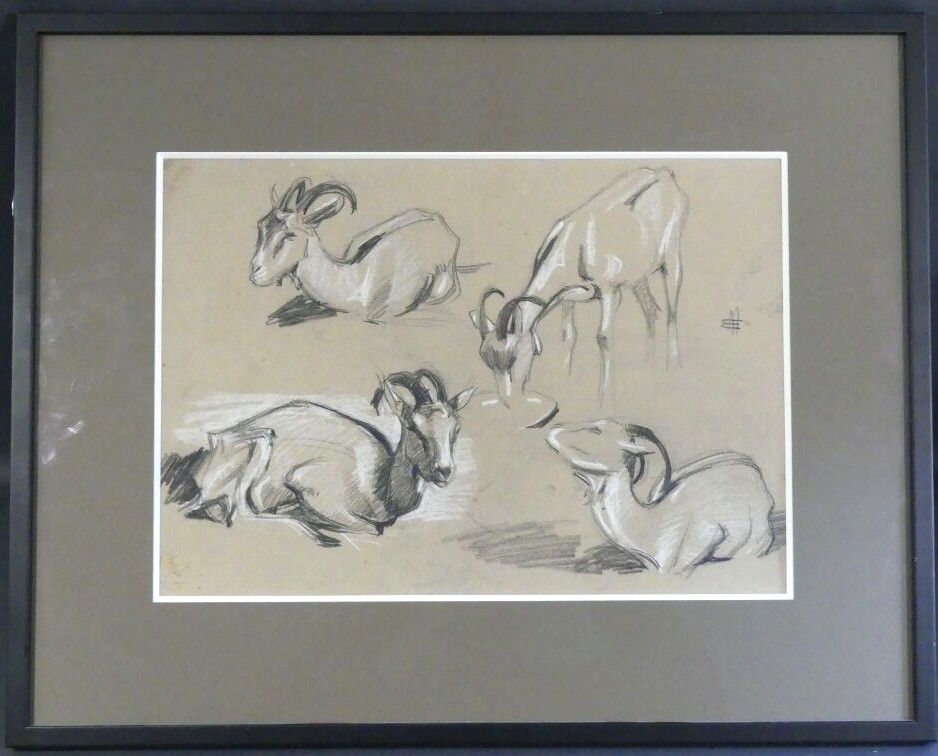 Mathurin MEHEUT (1882-1958) Study of goats, charcoal and cha…
