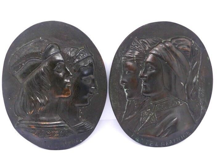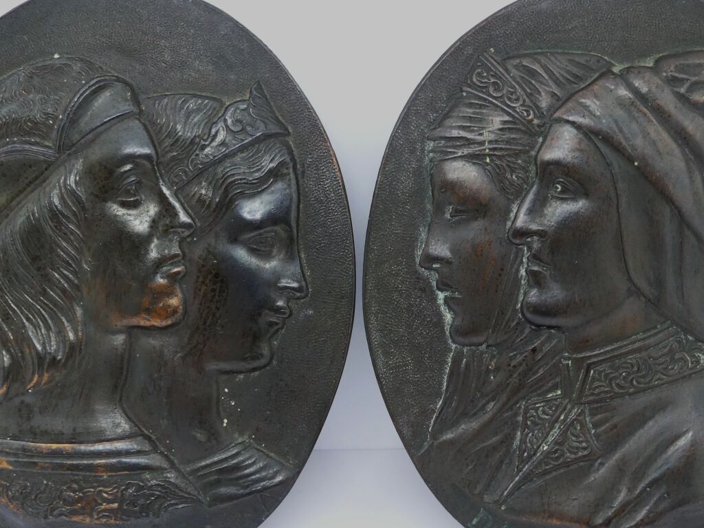 Pair of bronze medallions "Raffaello e Fornarina" and "Dante e Beatrice" 14 x 11 cm