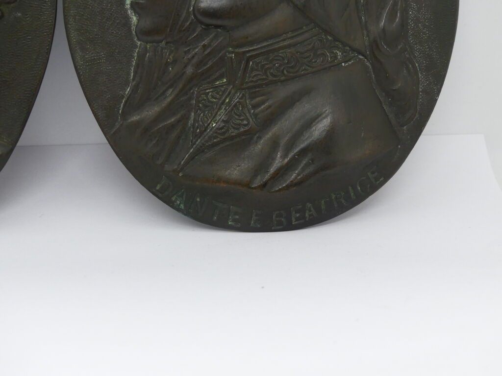 Pair of bronze medallions "Raffaello e Fornarina" and "Dante…