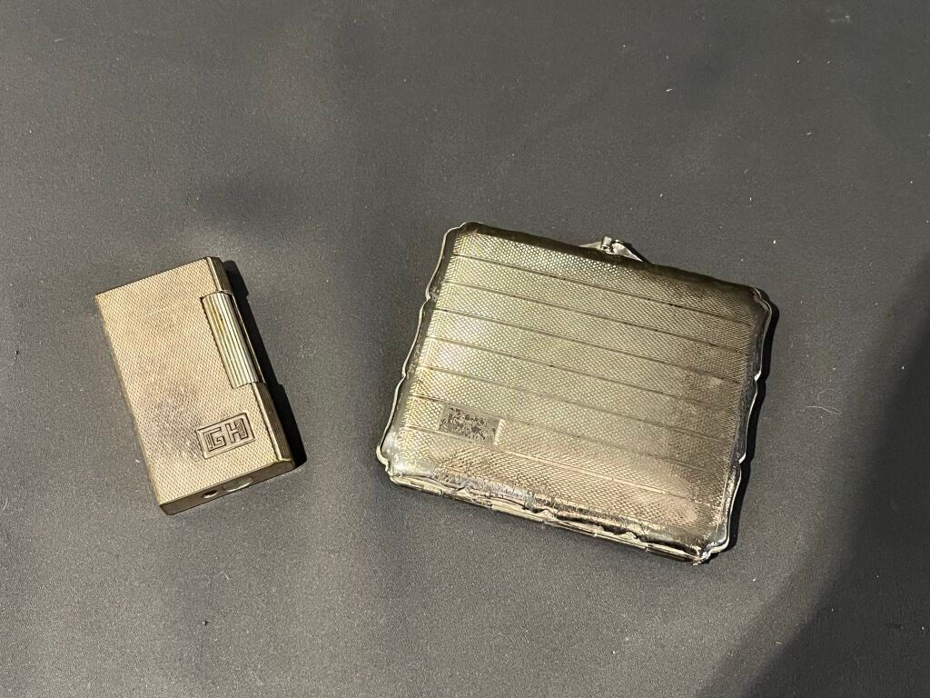 STRATON - English silver cigarette case + MYON - silver plated lighter