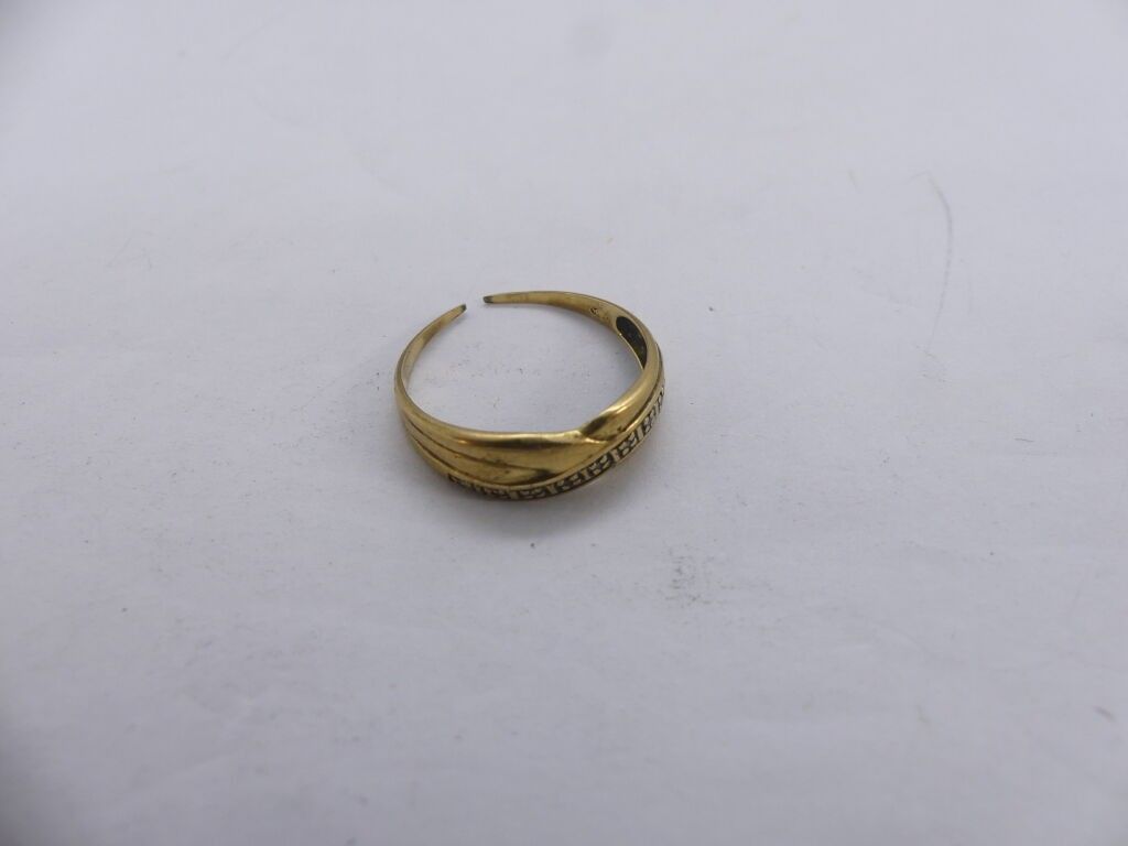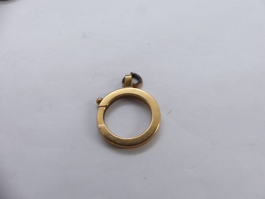 Yellow gold lot: ring (broken), watch chain clasp, flower ea…
