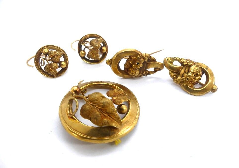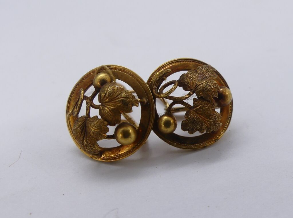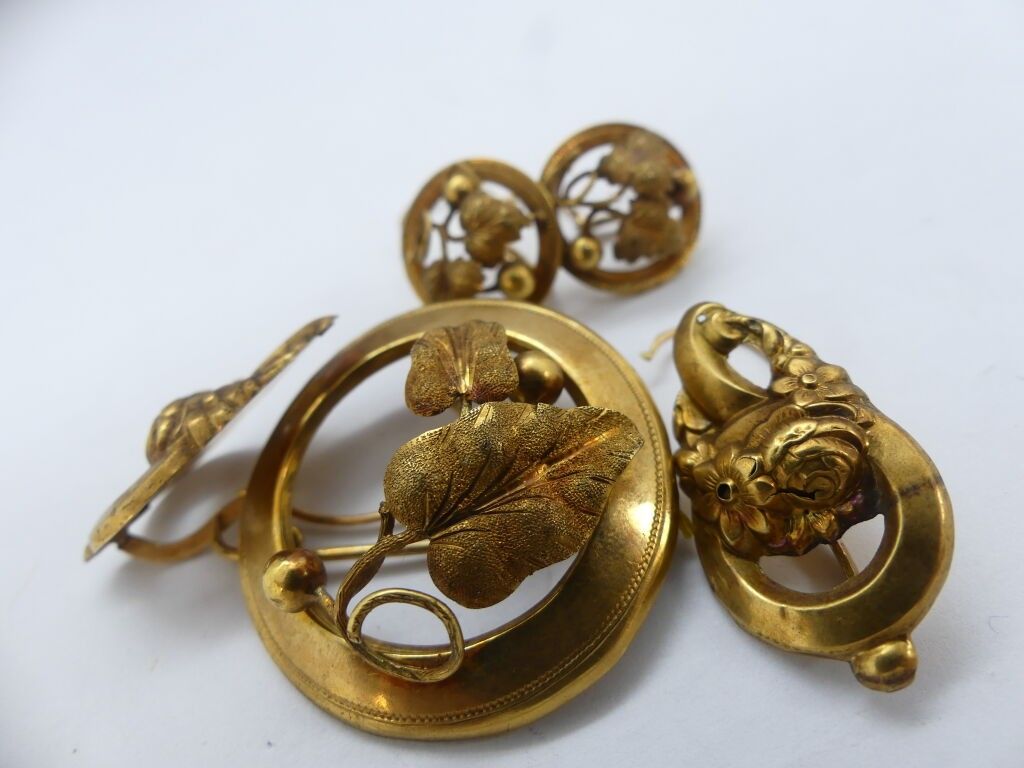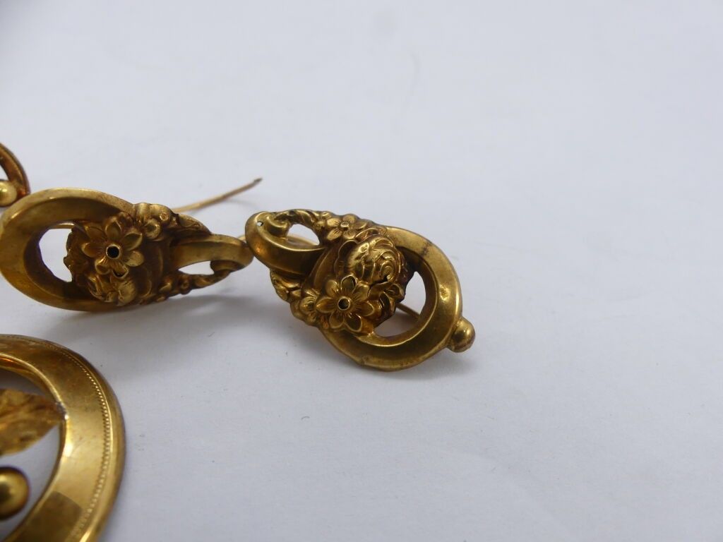 Set of jewellery in repoussé yellow gold with plant decoration