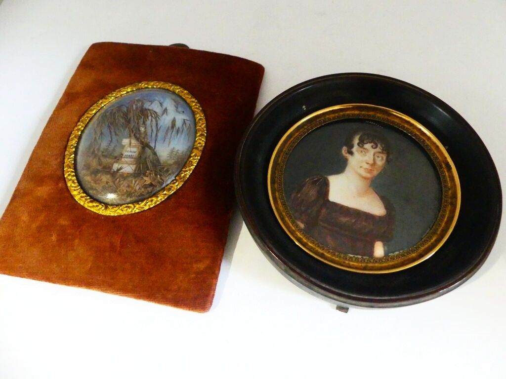 Miniature portrait of a woman, gouache signed lower right - …