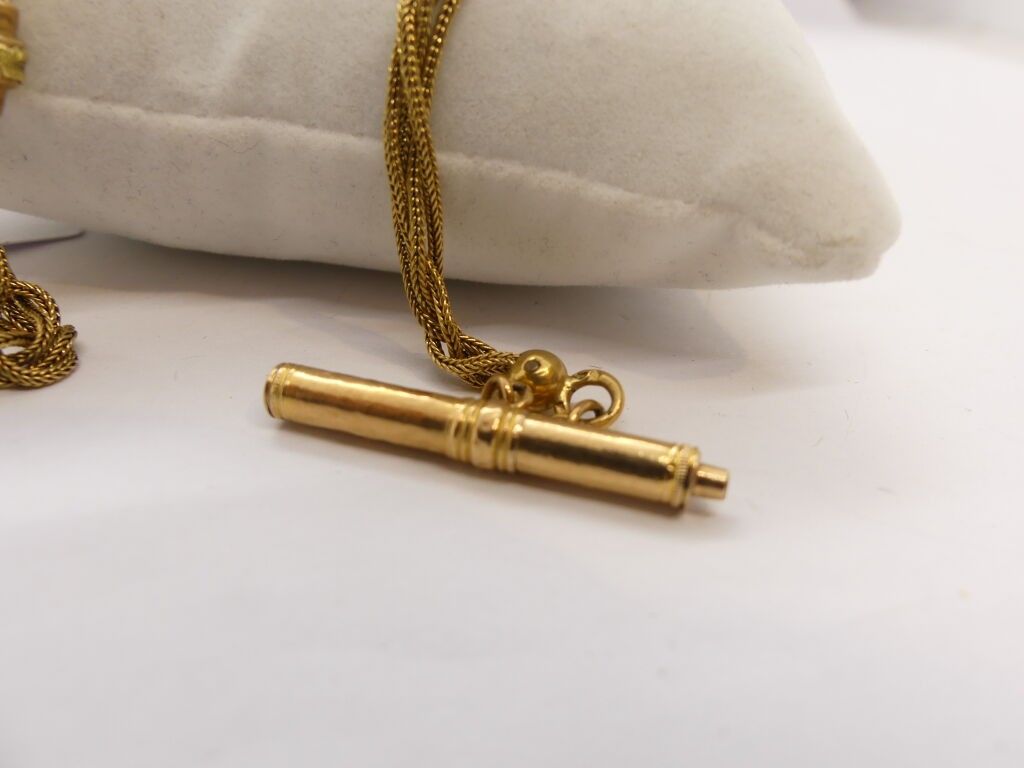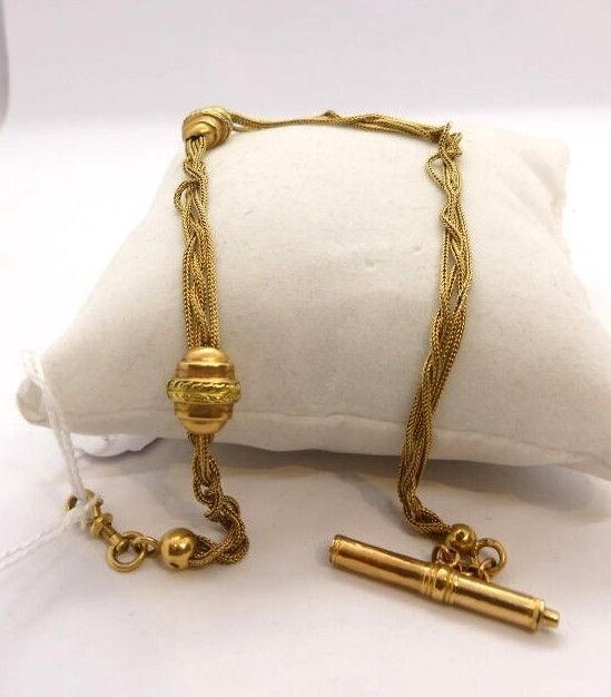 Yellow gold watch chain with braided links, 2 coullissants and key, late 19th century