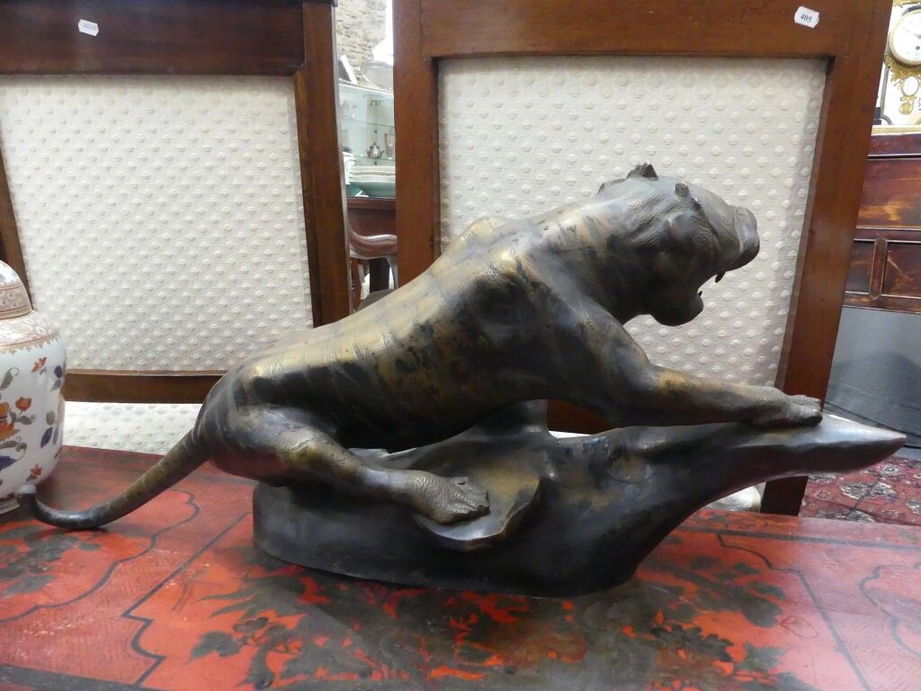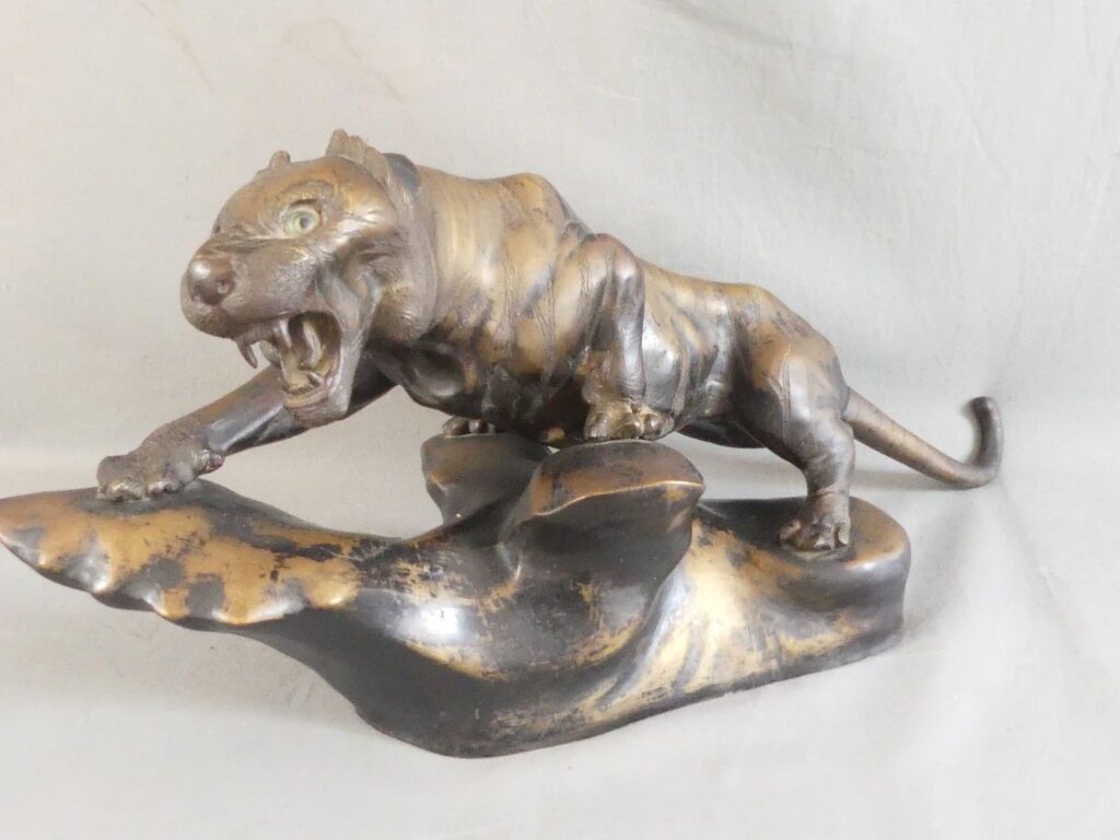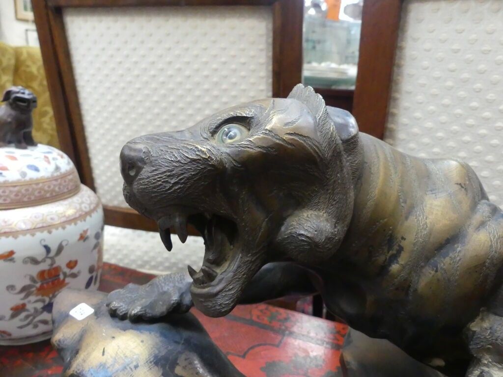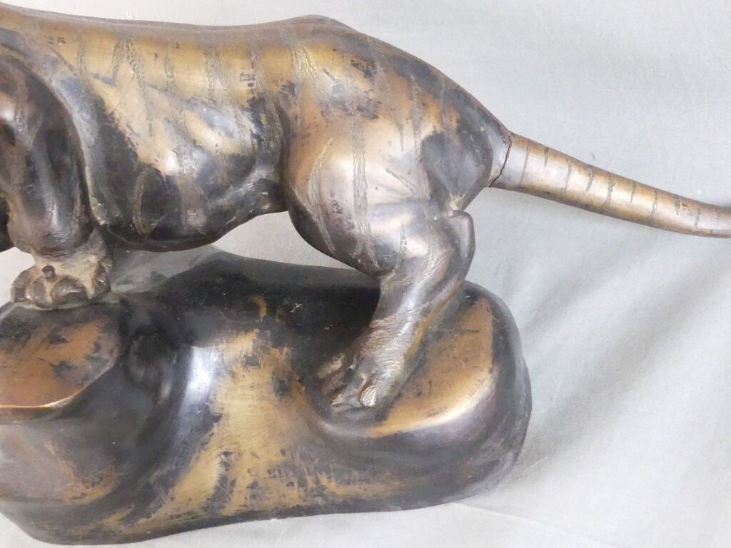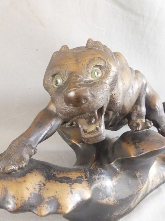 VIETNAM - Roaring tiger. Patinated and chased bronze with gl…