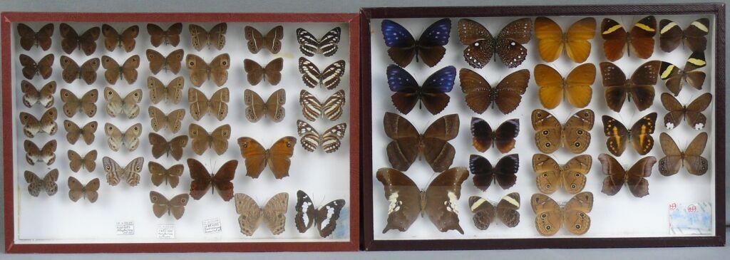 Asian Satyridae including Neorina lowi neophyta, Elymnias mimiques, also South American Pierella.