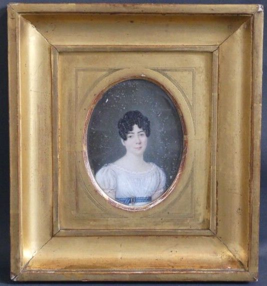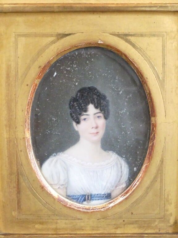 Miniature portrait of a woman in an oval, rectangular giltwo…