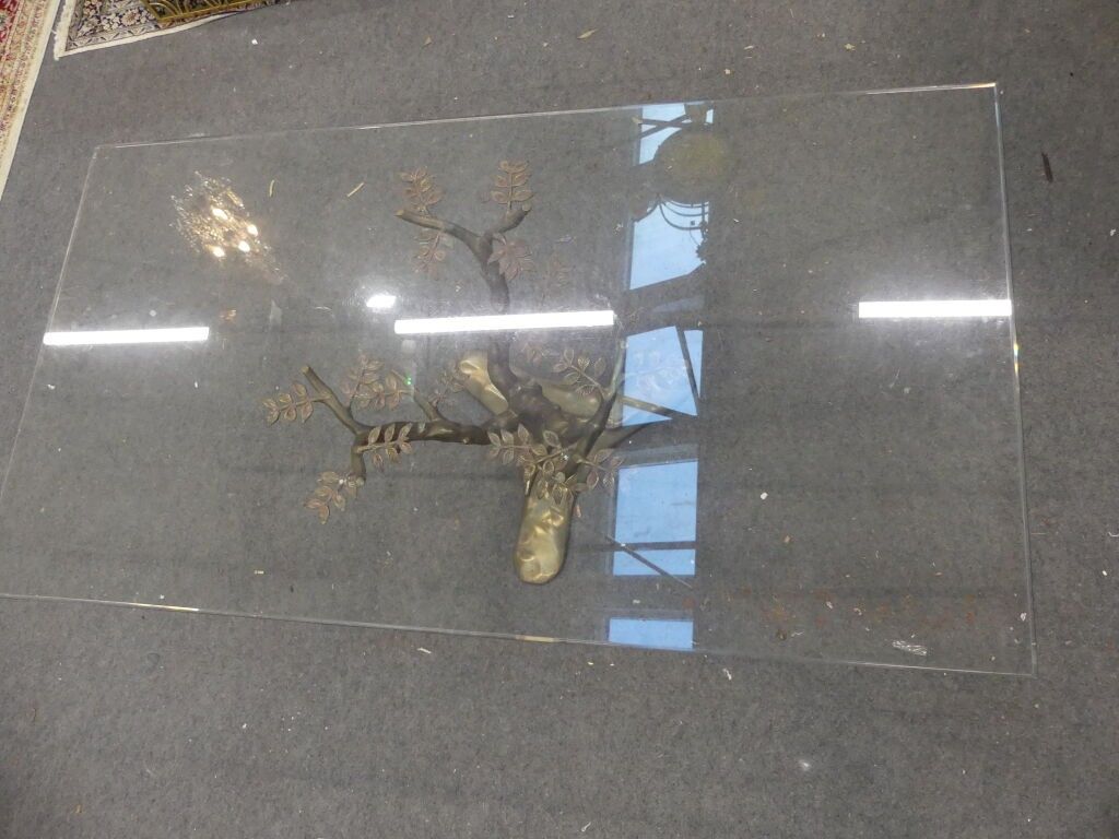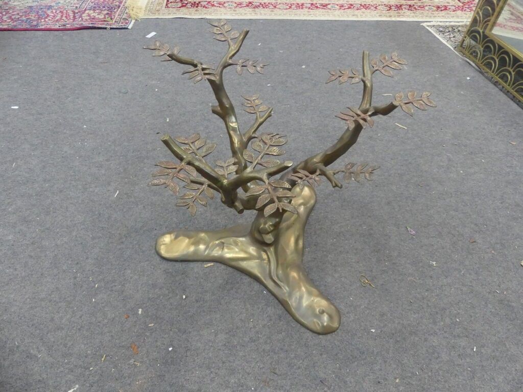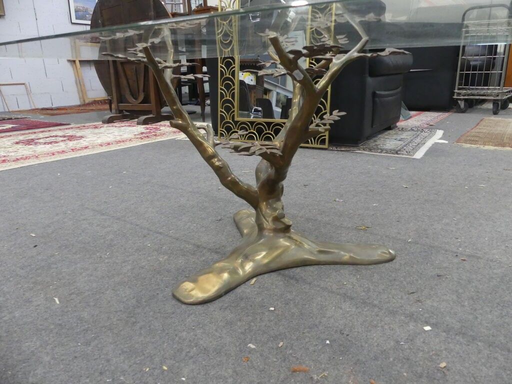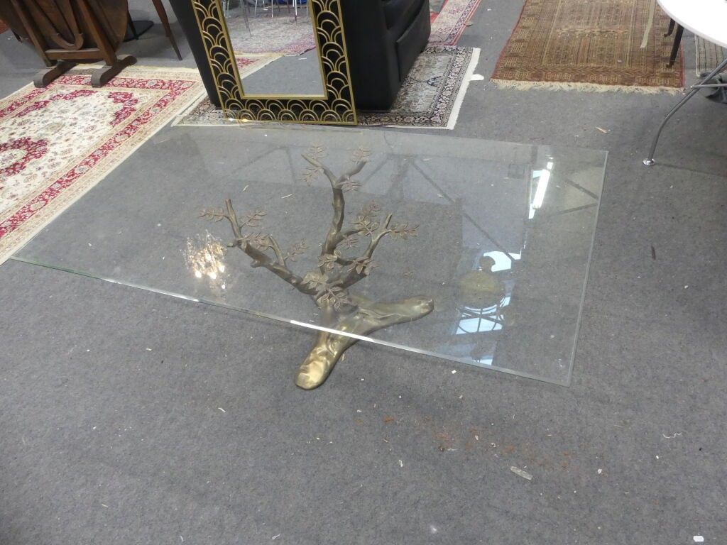 Brass "bonsai" coffee table, rectangular glass top (reported).