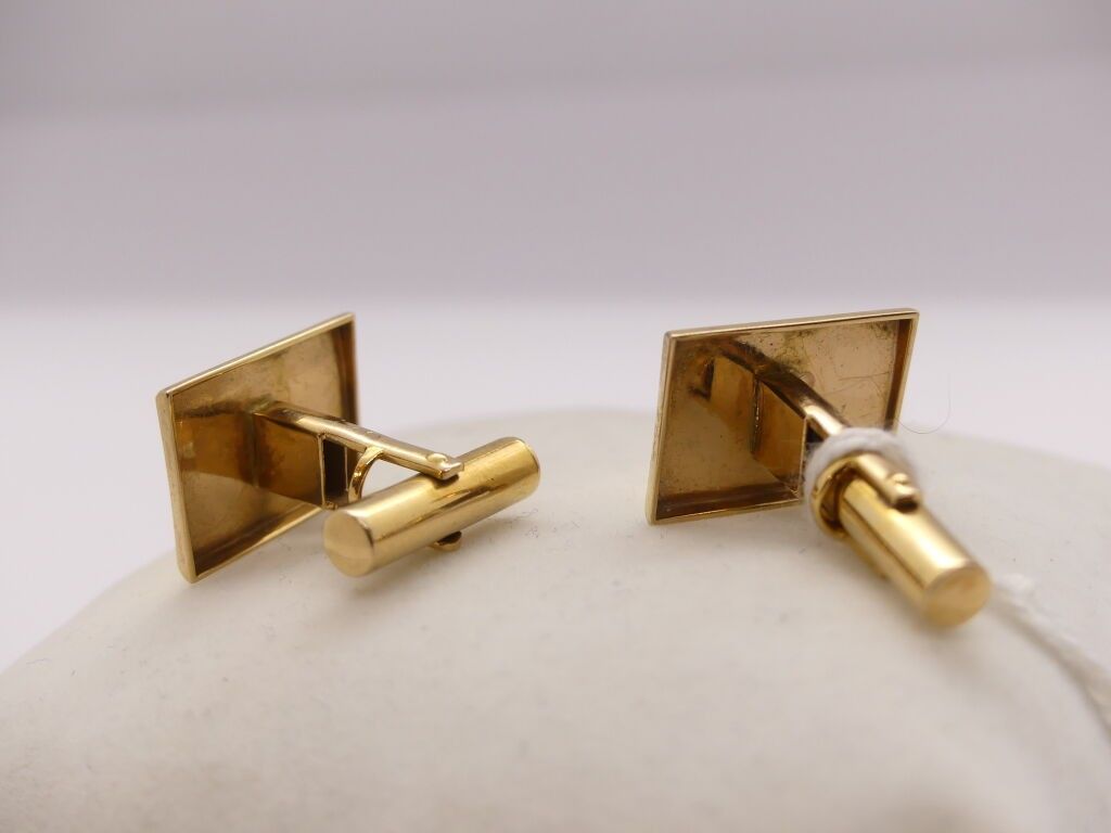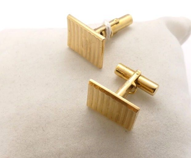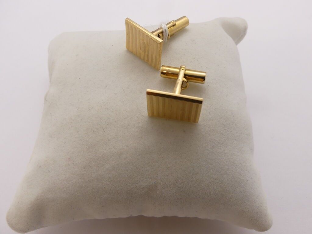 Pair of cufflinks in rectangular yellow gold, striated motif.
