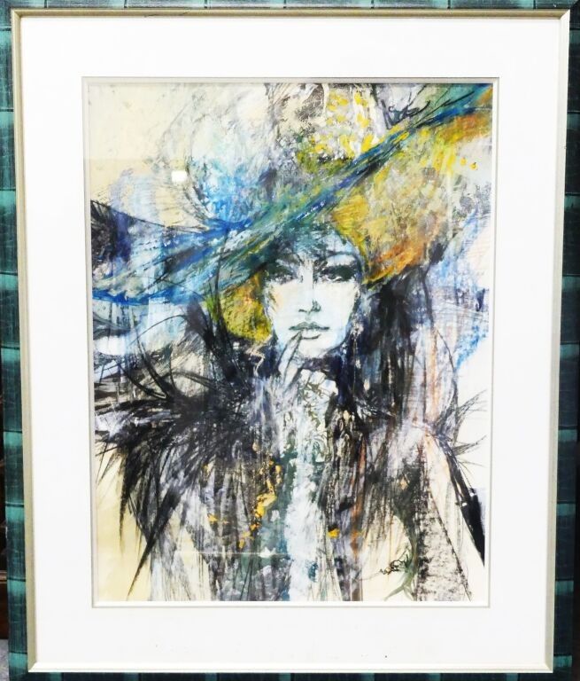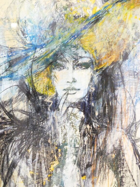 Michel GUYON (1947 - ) Galante with a Blue Hat