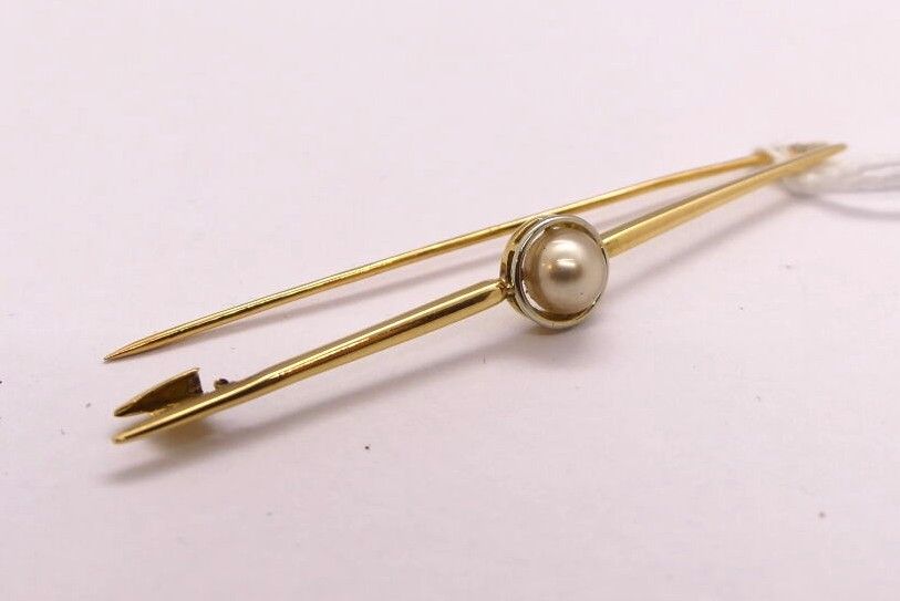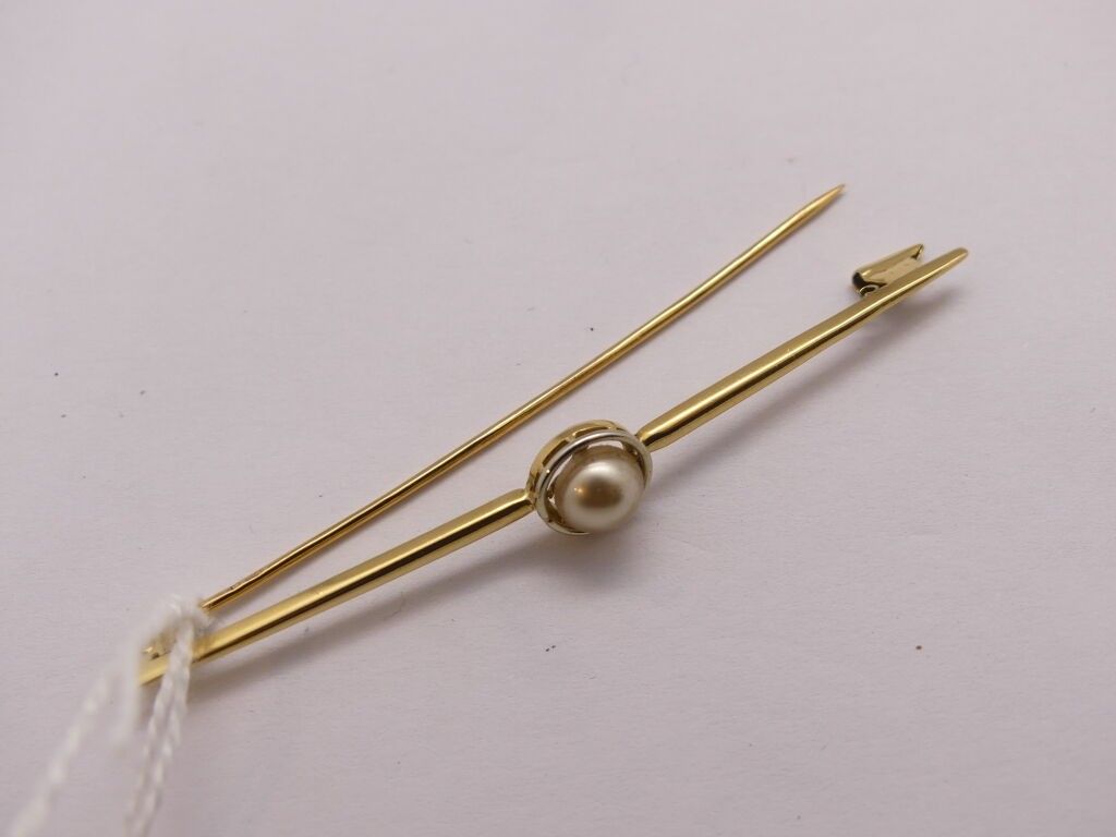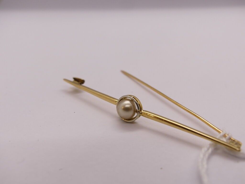 Gold tie pin or brooch set with a pearl