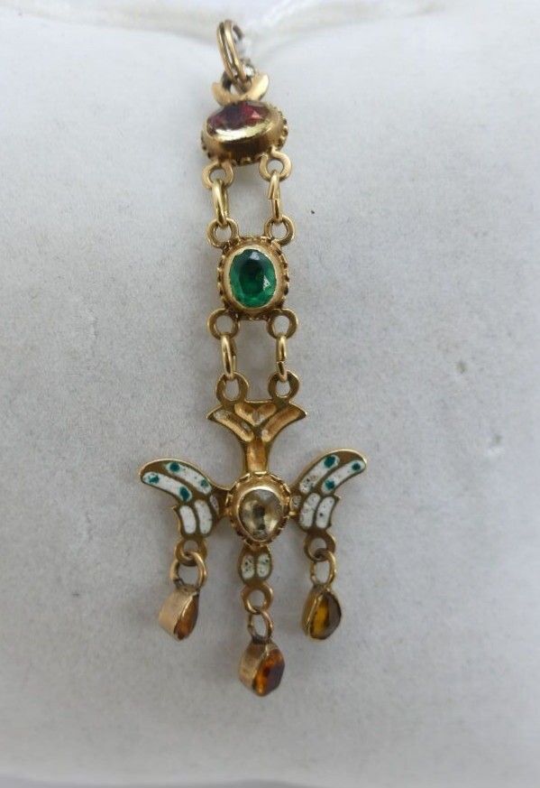 Enamelled gold and coloured rhinestone "Saint esprit" pendant from Auvergne
