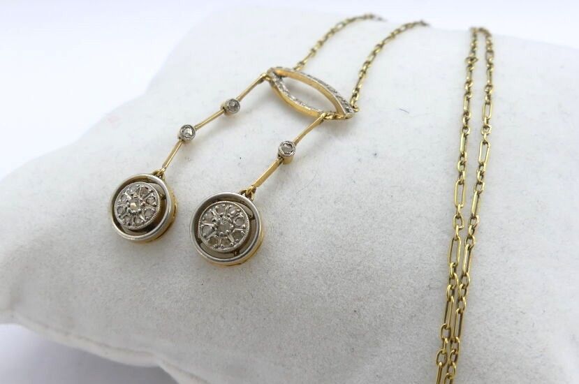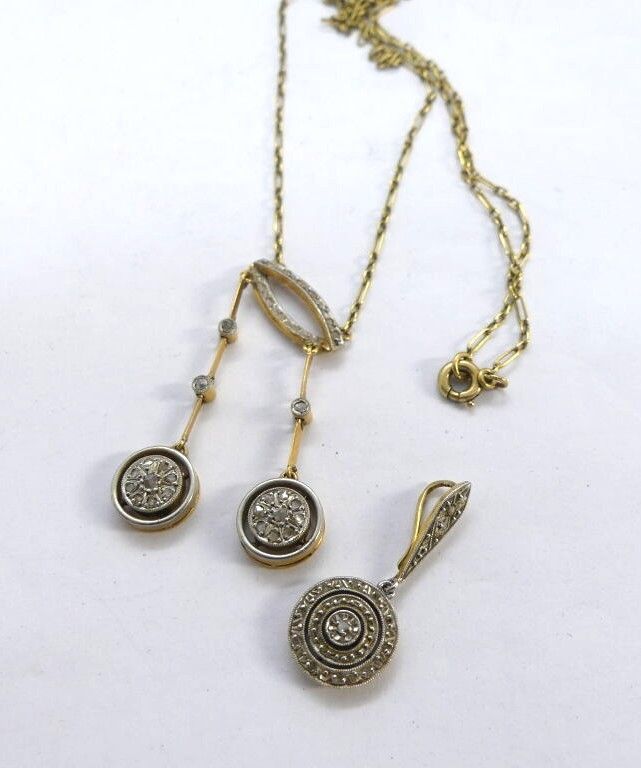 Two-tone gold negligé set with diamonds on the pendant and u…