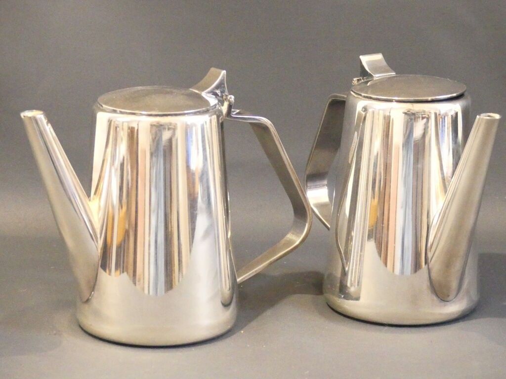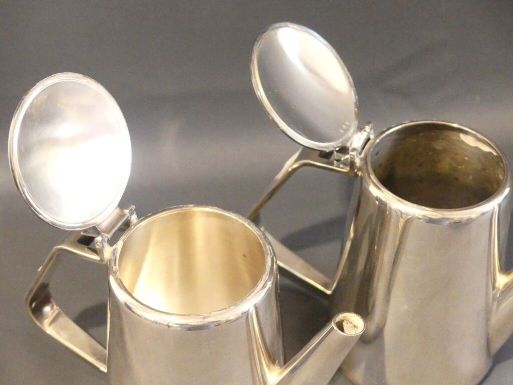 2 silver-plated teapots.