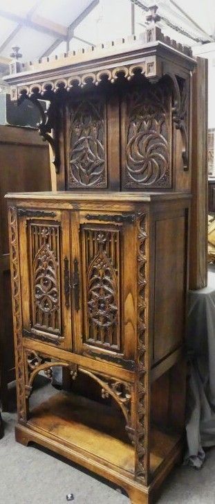 Neo-Gothic style sideboard in carved moulded oak opening ont…