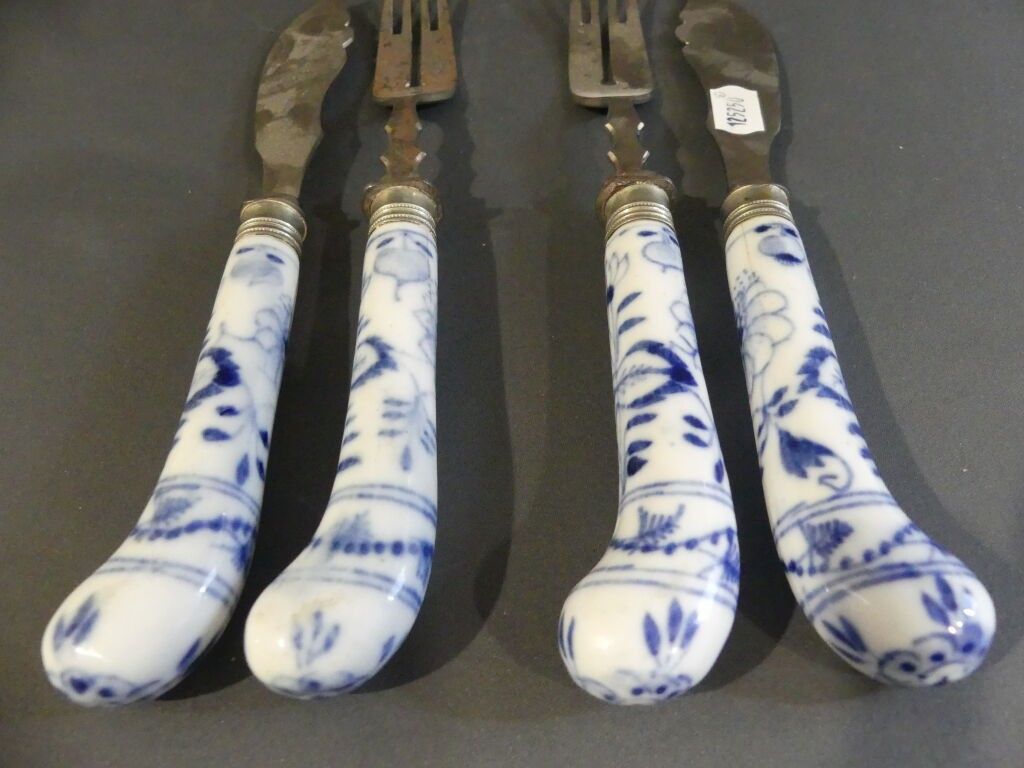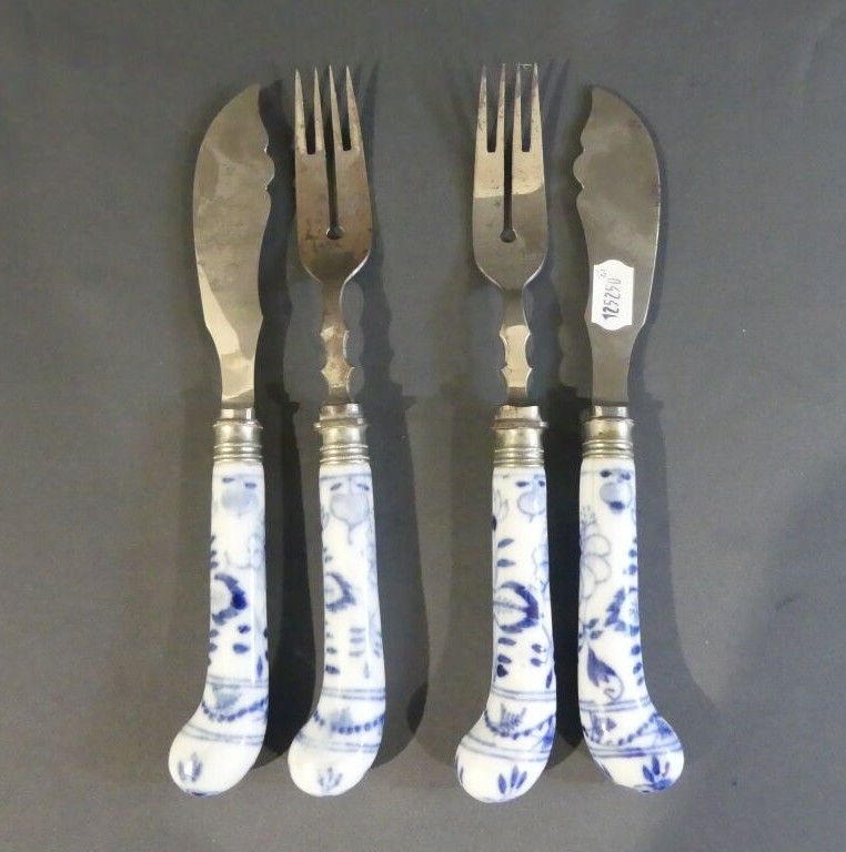 MEISSEN. 2 pieces of fish cutlery with porcelain handles, de…
