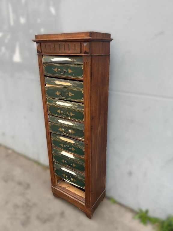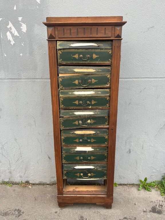 Narrow 7-drawer green cardboard chest of drawers (1 box miss…