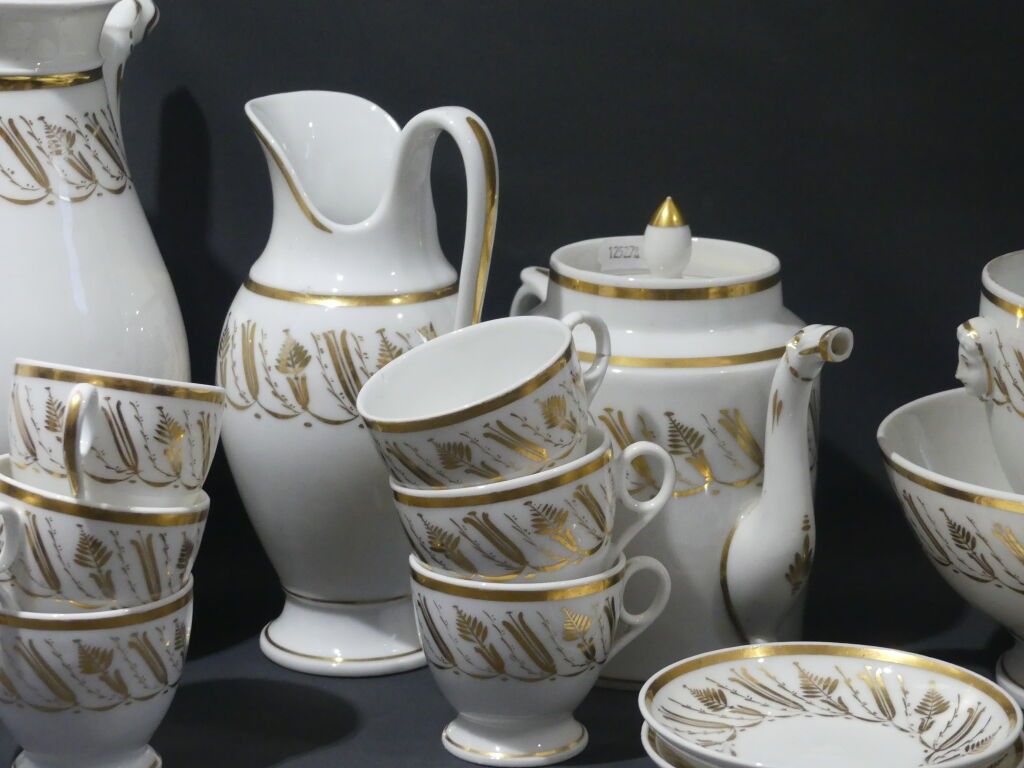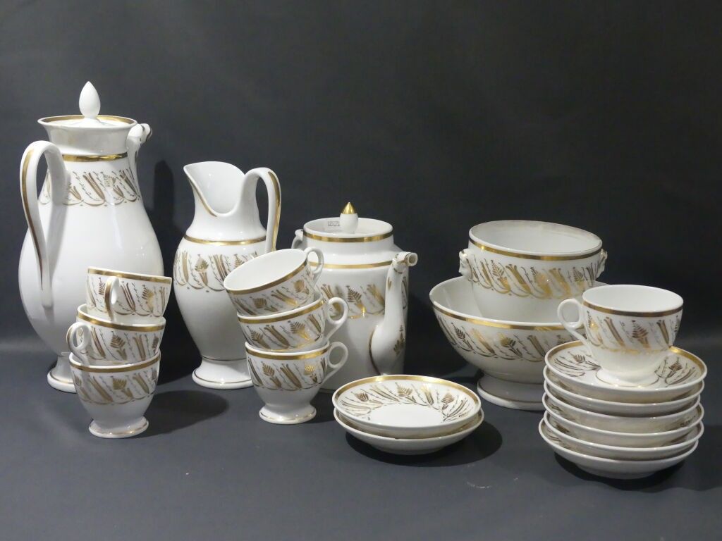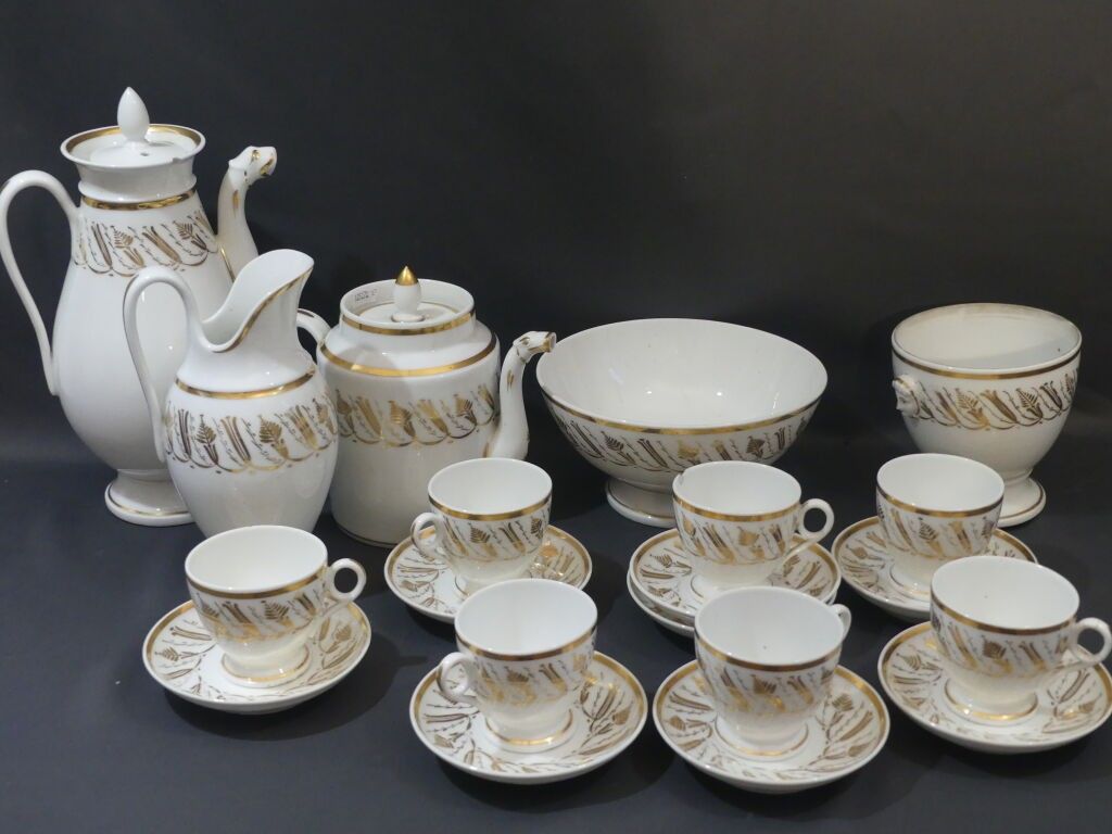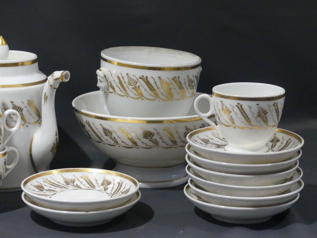 PARIS White and gilt porcelain tea and coffee set with friez…