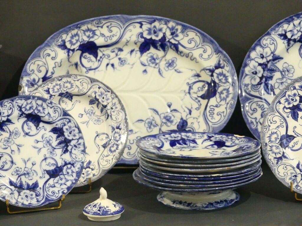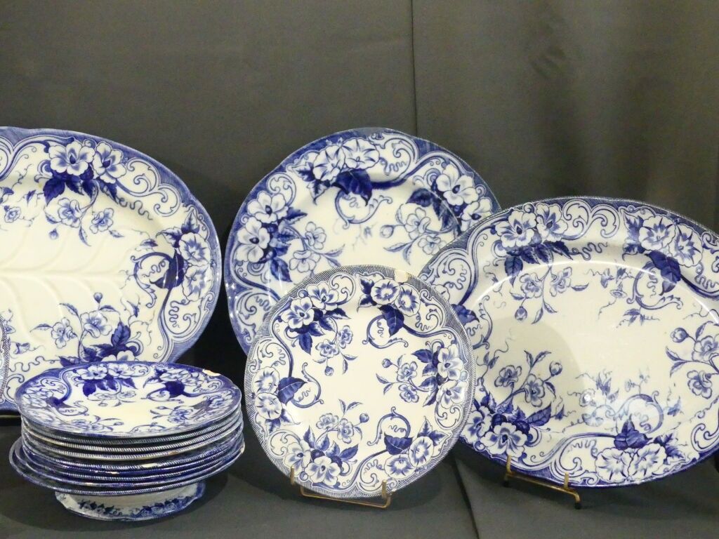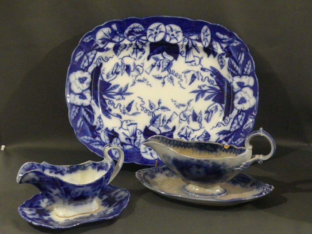 2 saucers and a rectangular dish of similar designs, including Jules Vieillard in Bordeaux, Sarreguemines, are included.