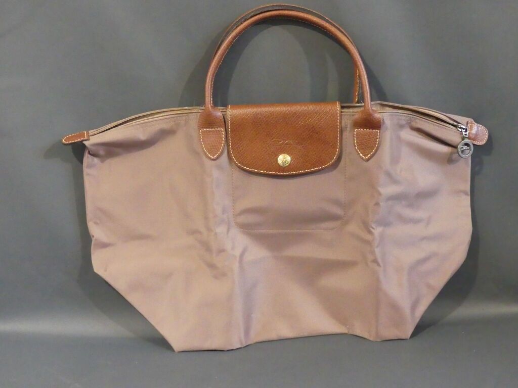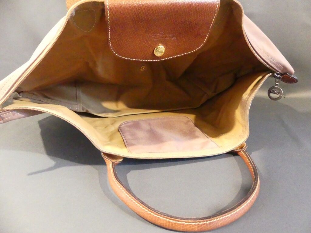 LONGCHAMP Waterproof canvas and leather bag with brown leath…