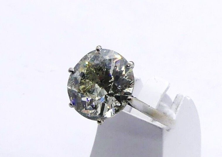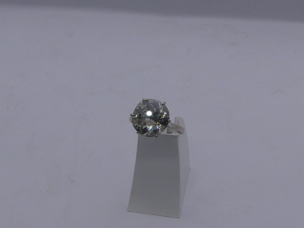 Solitaire ring in white gold set with a diamond weighing approximately 6.60 carats.