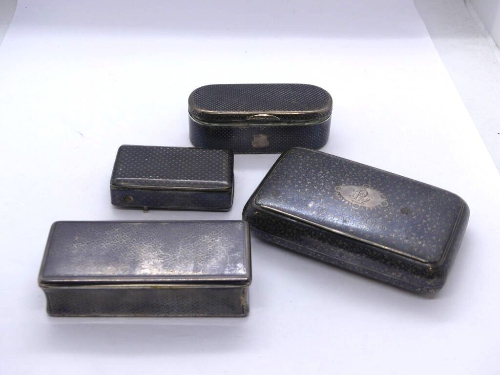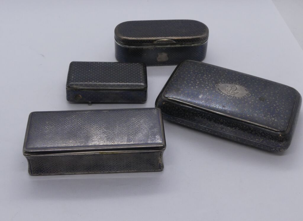 Set of 4 silver snuffboxes, one engraved, including Russian …