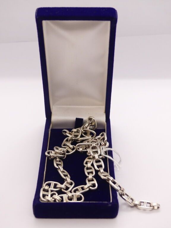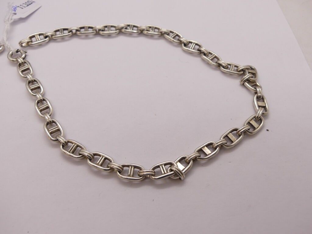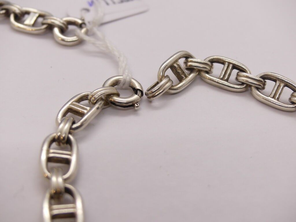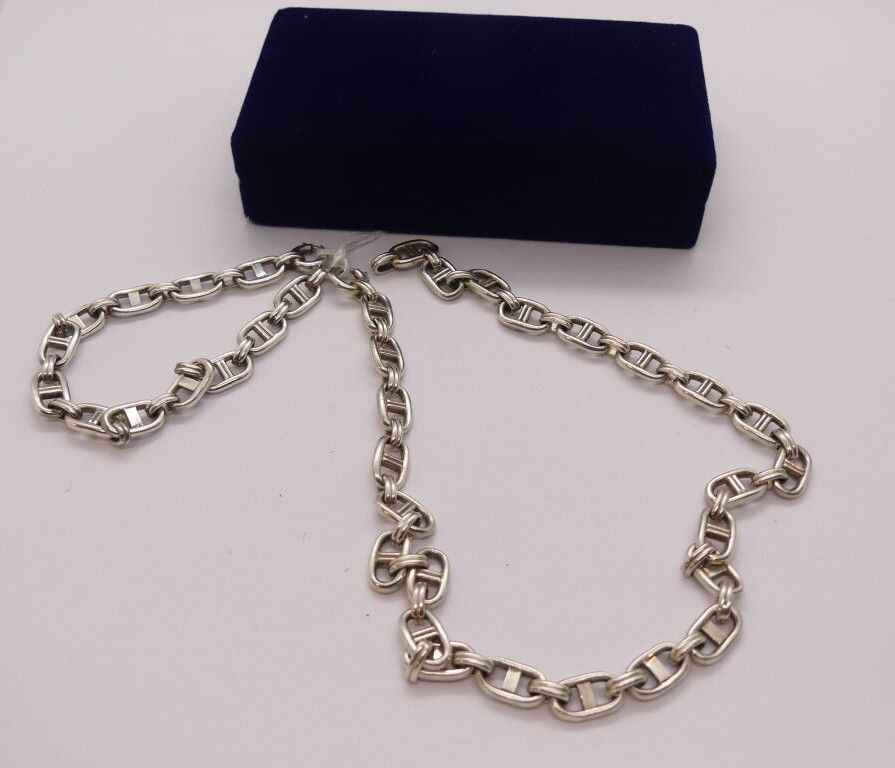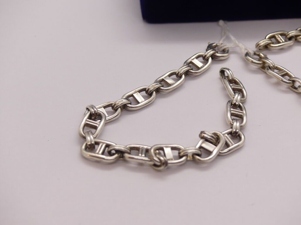 Silver necklace and bracelet, anchor chain link in the Hermes style