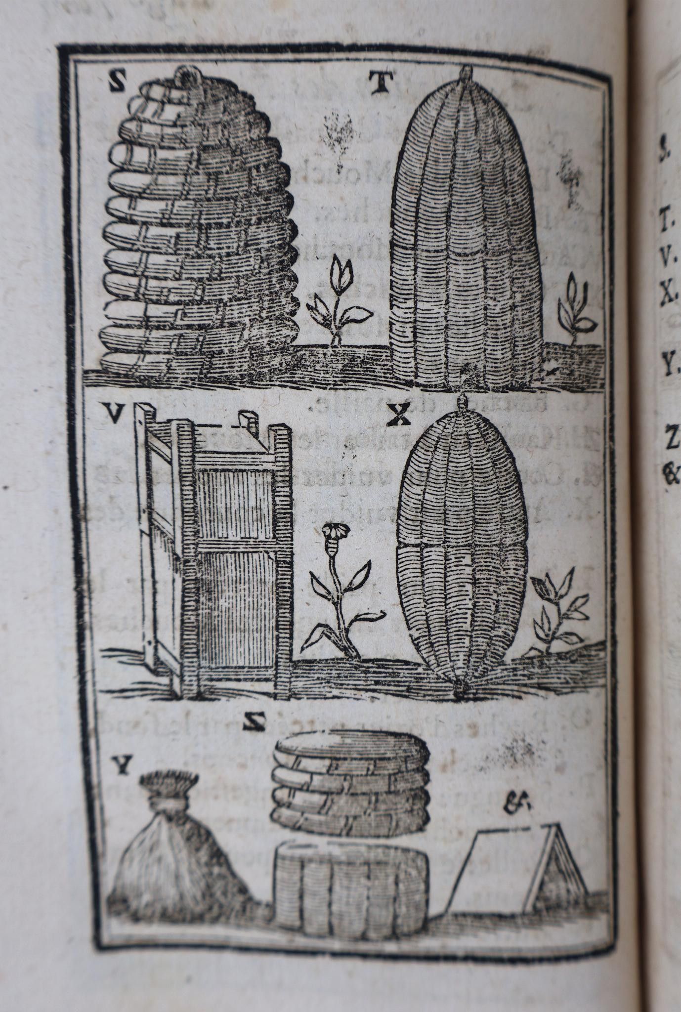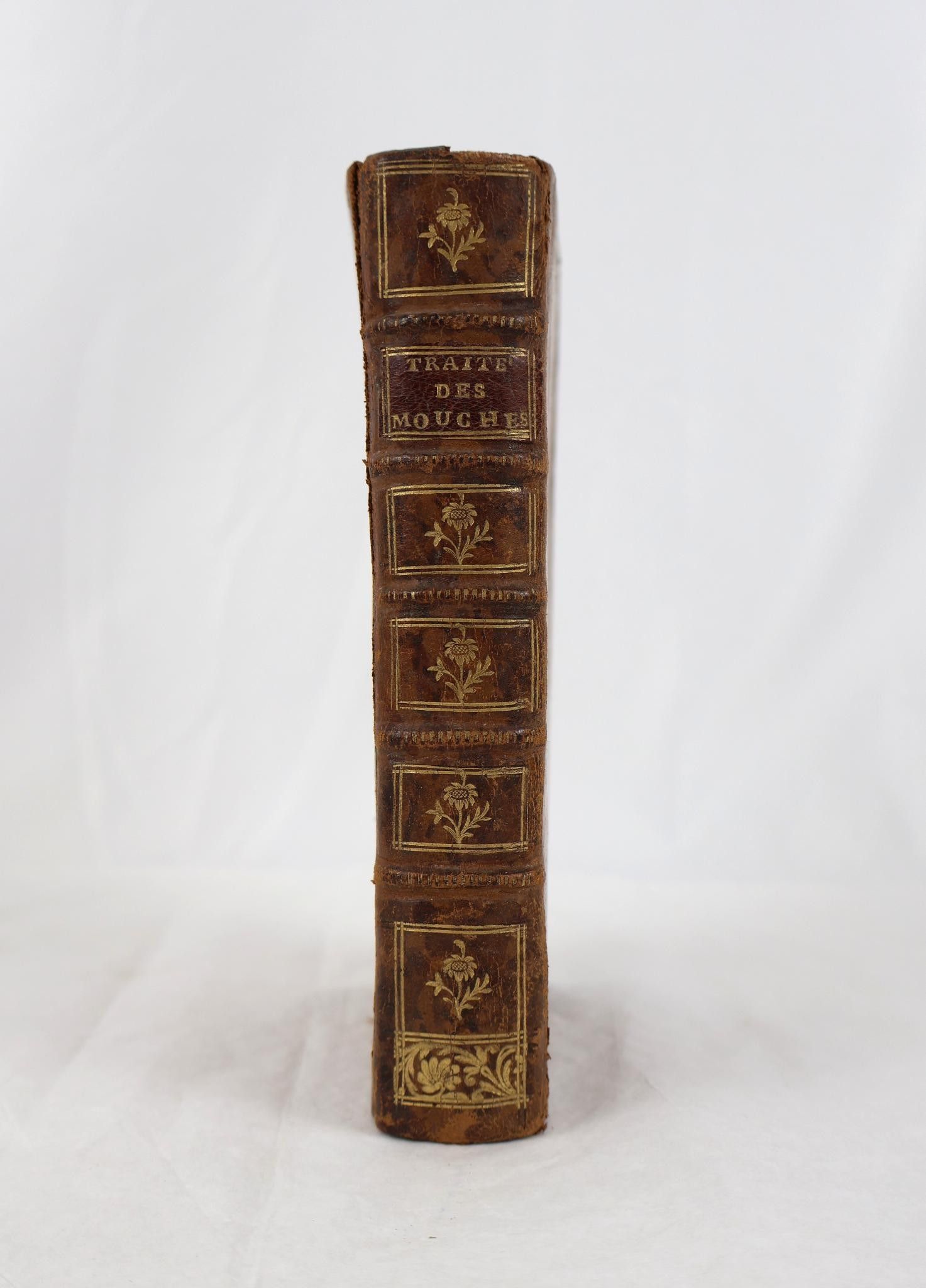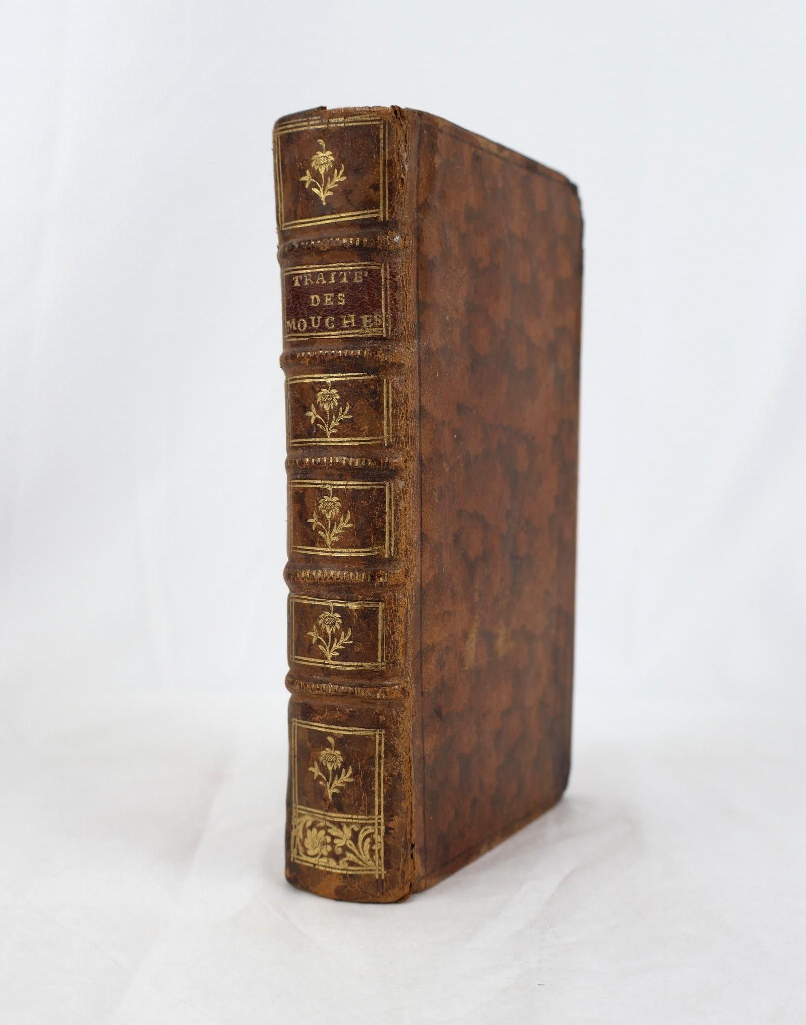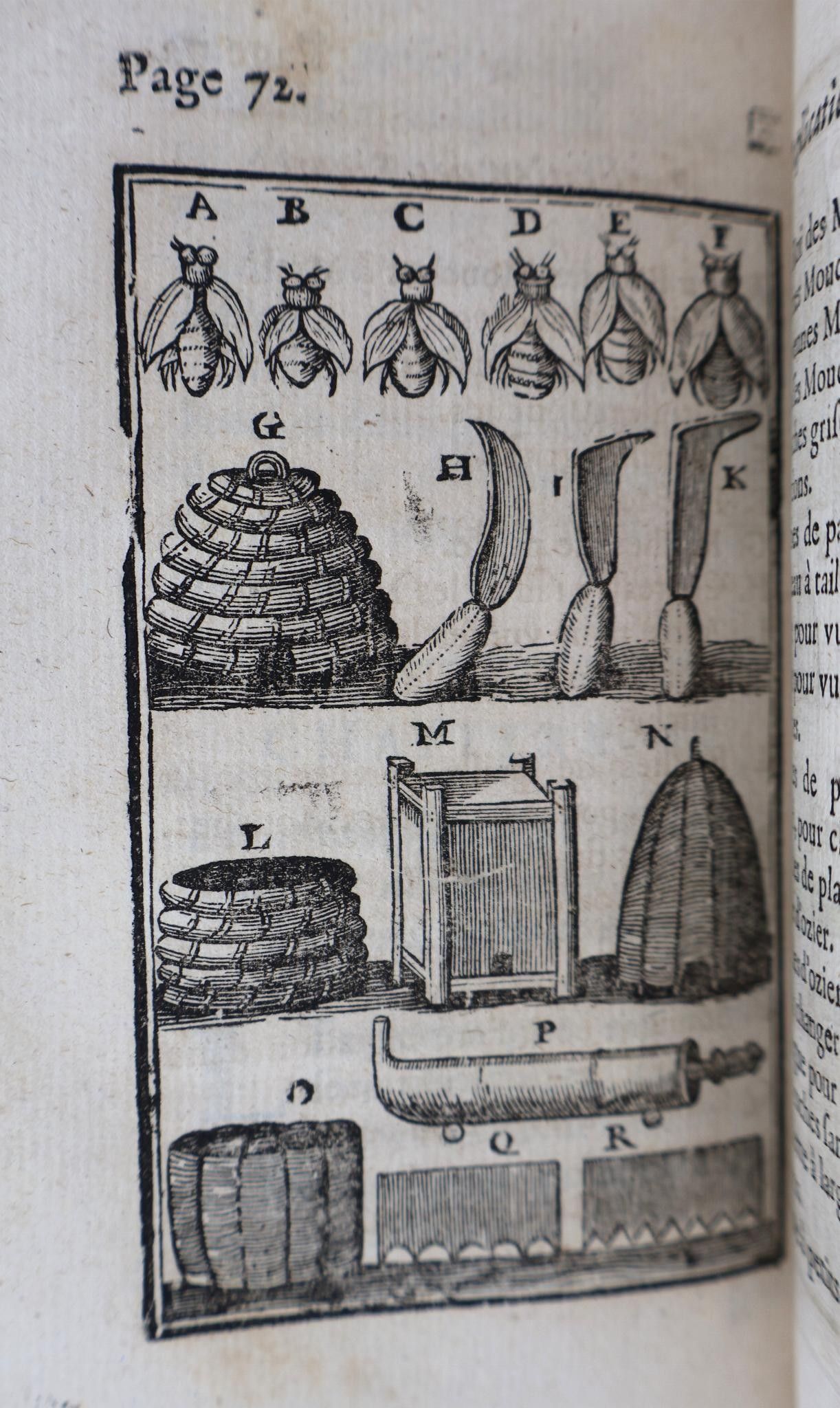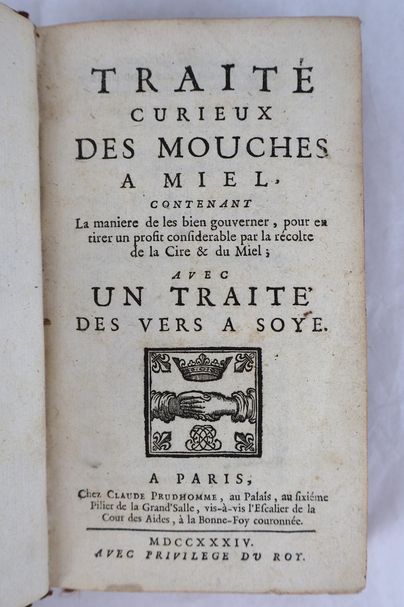[BRETONNIERE (M. de la) or LIGER (Louis)]. Traité curieux des mouches à miel, contenant la manière de les bien gouverner, pour en tirer un profit considérable par la recolte de la cire & du miel ; avec un Traité des vers a soie. Paris, Claude Prudhomme, 1734. In-12 of [12], 418, [4] pp. 2 plates with their f. of explanation in hors-texte. Chipped fawn basane, spine with 5 raised bands, t.p. in red morocco, cold fillet on the boards, gilt roulette on the edges, spotted red edges (Binding of the period).