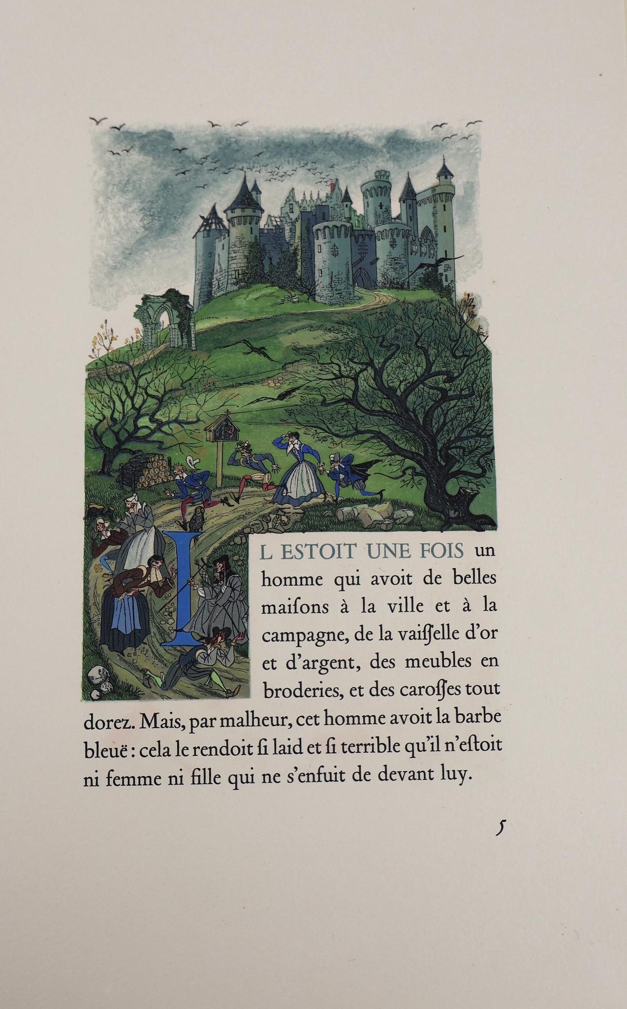 Barbe-Bleue. Paris, Jean Porson, 1949. In-8° of 27 pp. 25 colour ill. in the text. In sheets. Filled title cover, illustrated blue slipcase.