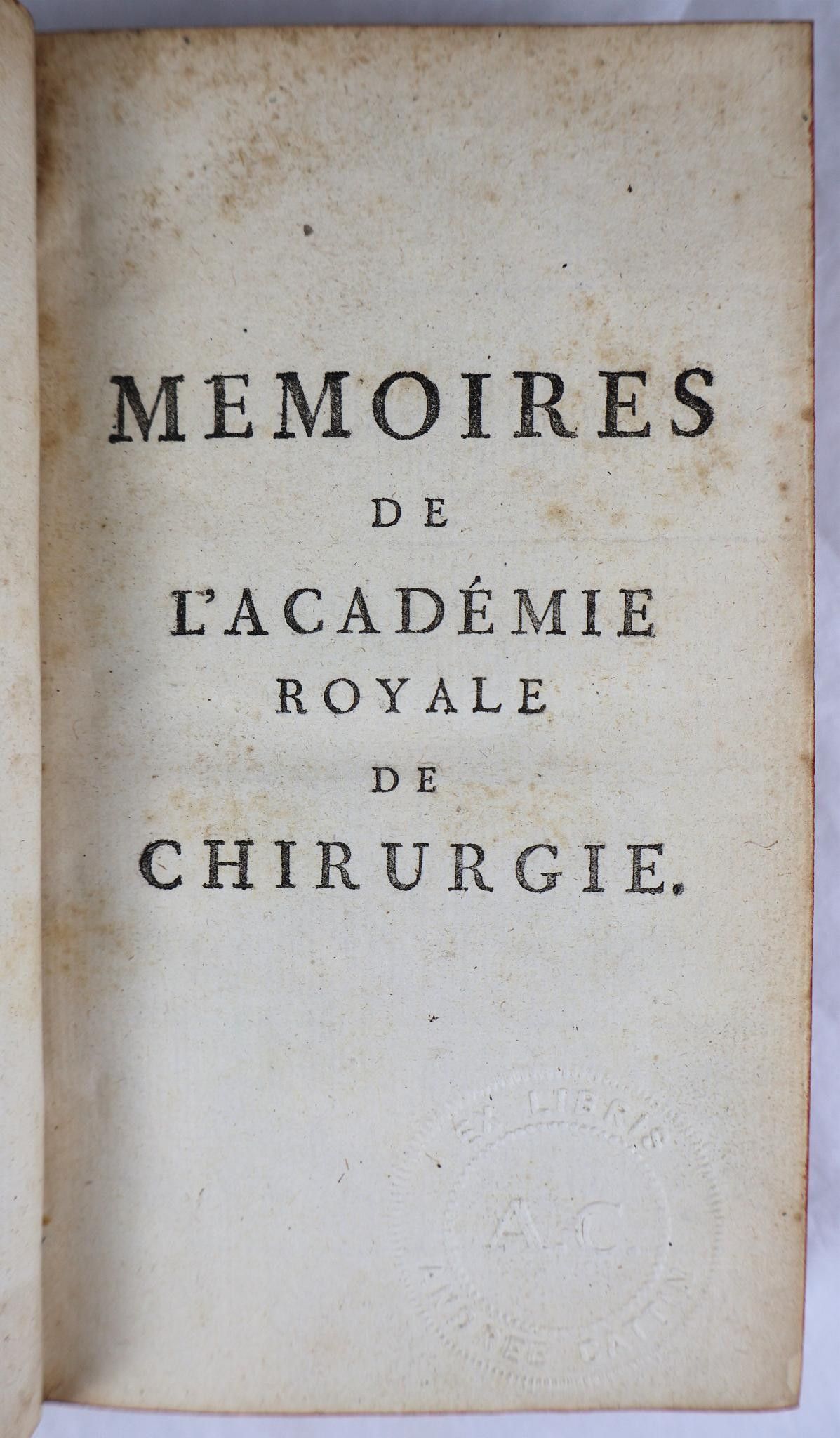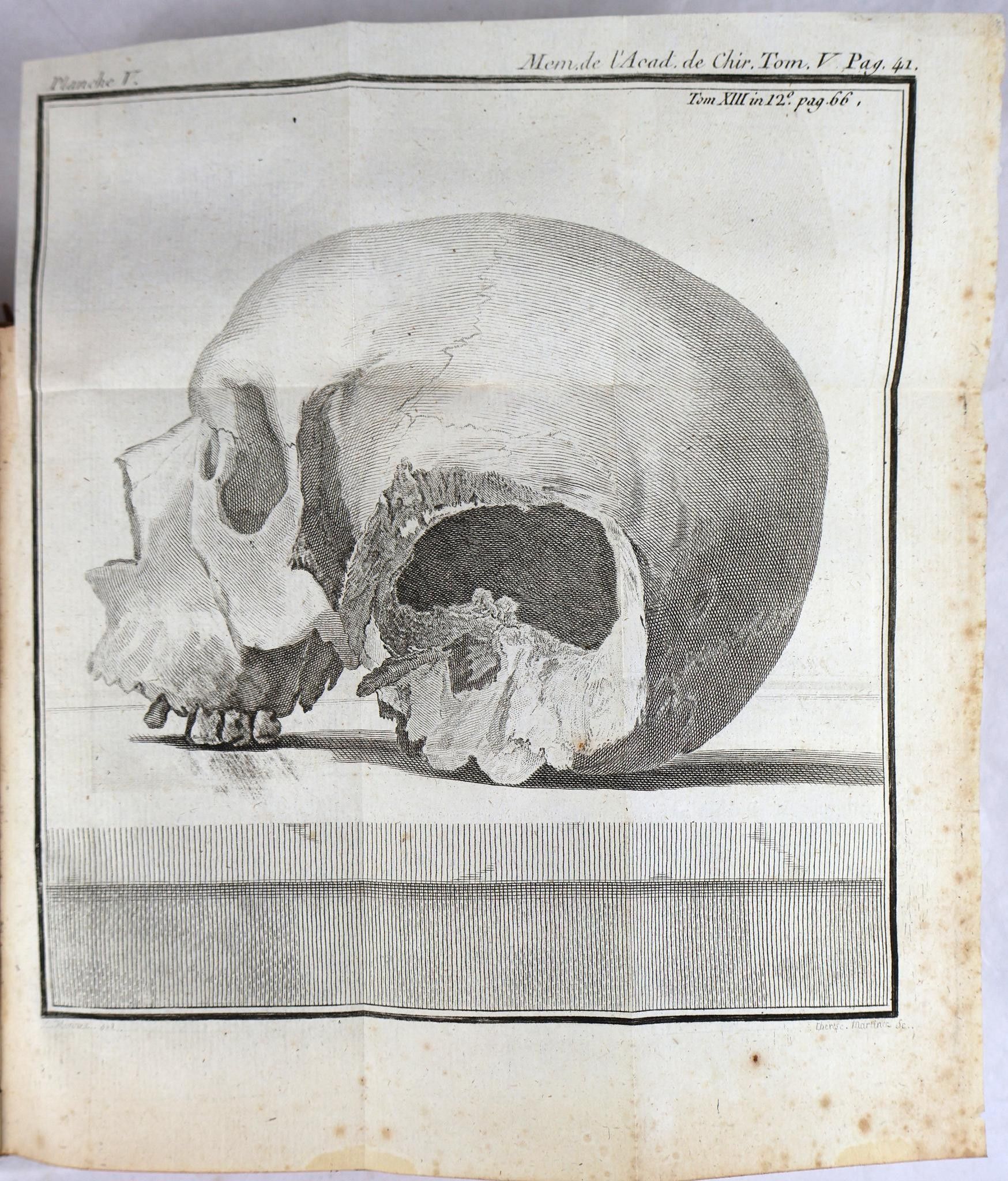 [Medicine] ? Mémoires de l'Académie royale de Chirurgie. 6 vol. in-12. Tome I. Part I. Paris, P. Alex. Le Prieur, 1764. xc, [4], 391 pp. [Trepan and humours] ? Volume