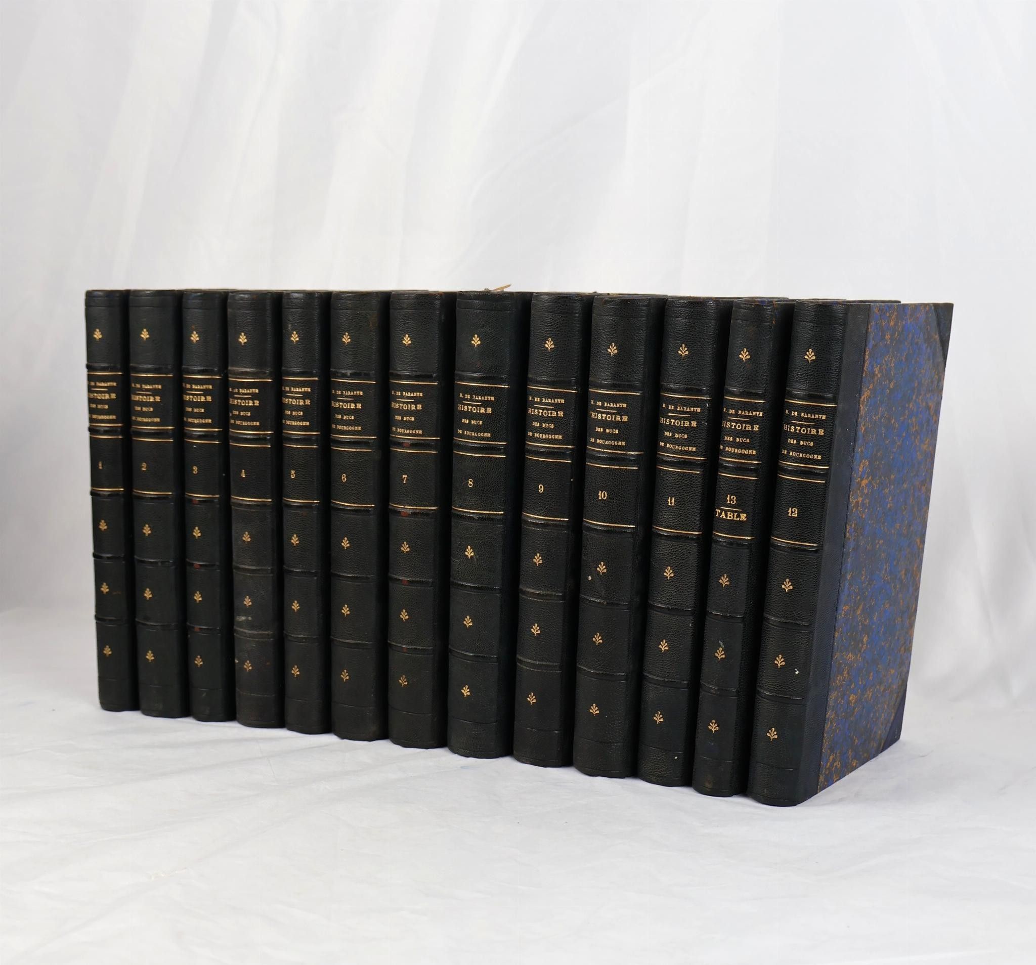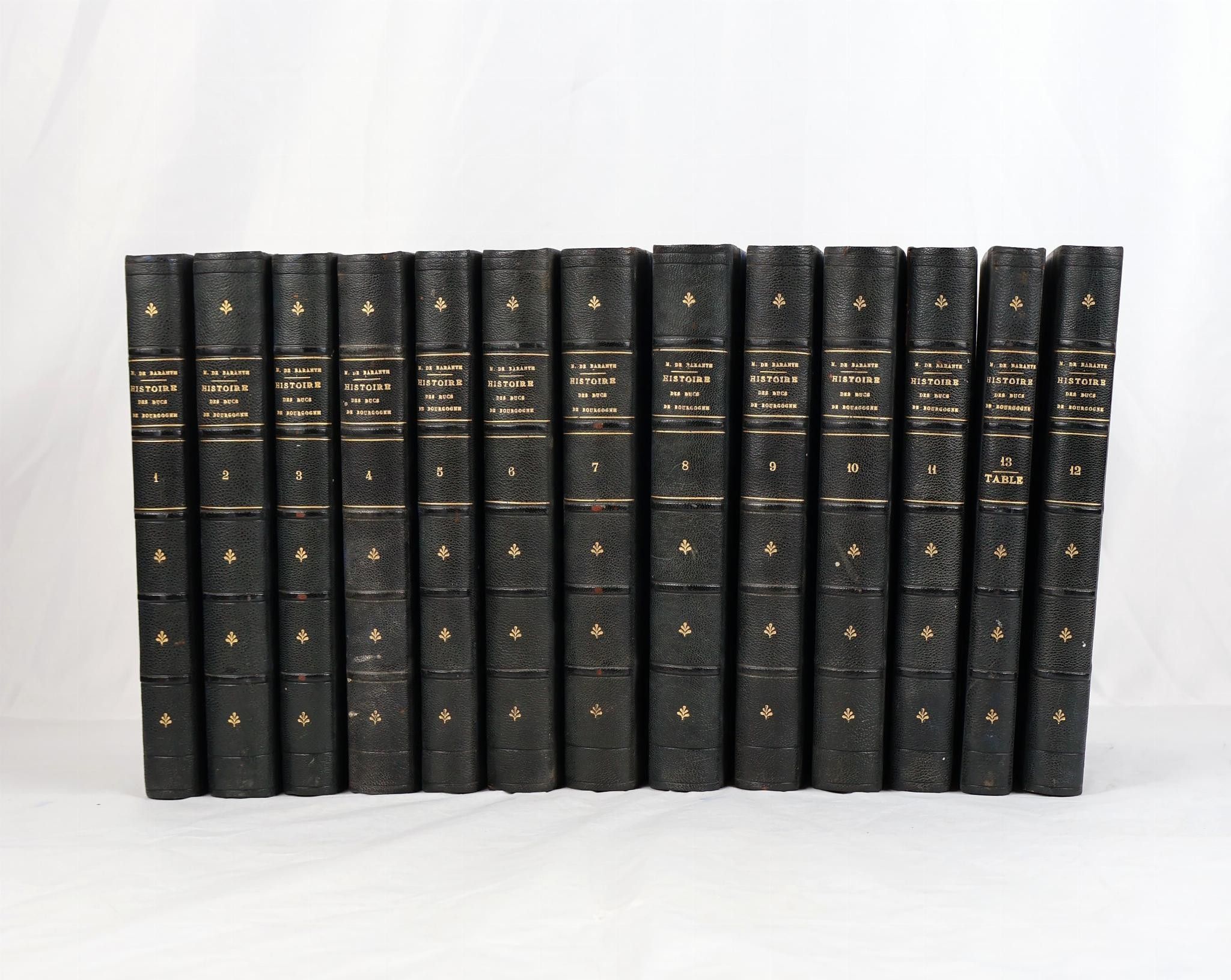 BARANTE (Prosper Brugiere baron de). Histoire des Ducs de Bourgogne de la Maison de Valois, 1364 - 1477. Paris, Ladvocat, 1826. 13 vol. in-8°. Blue half-chagrin with corners, spine with 5 faux-nerfs decorated, gilt title and tomaison, speckled edges (Binding of the time).