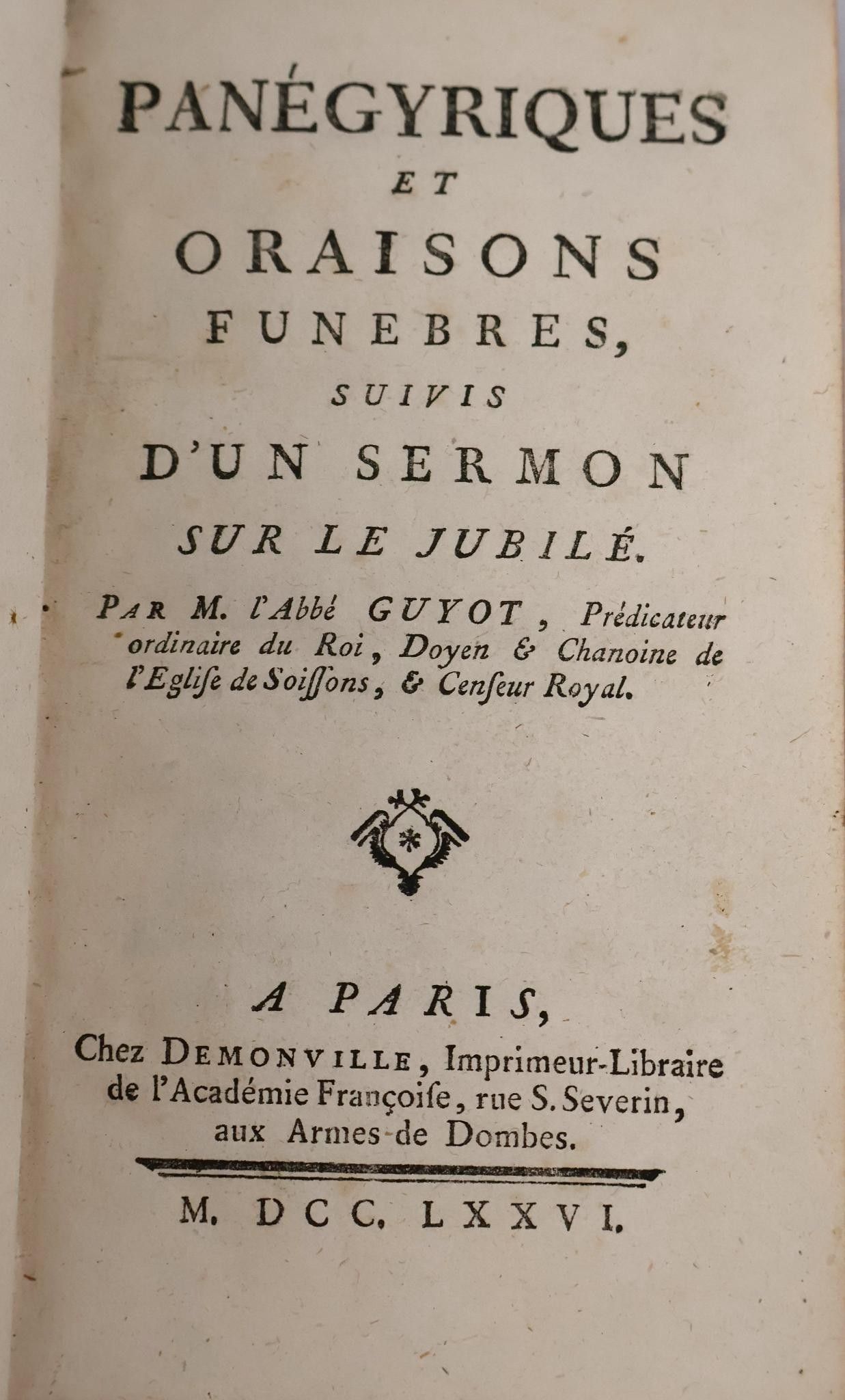 GUYOT (Guillaume-Germain, abbé). Panégyriques et Oraisons fu…