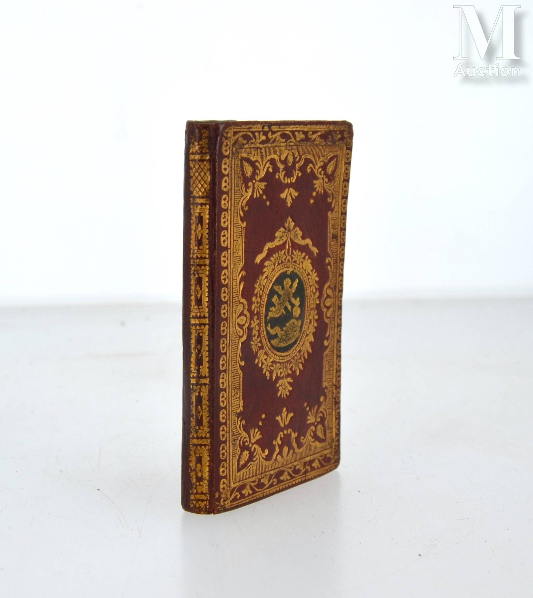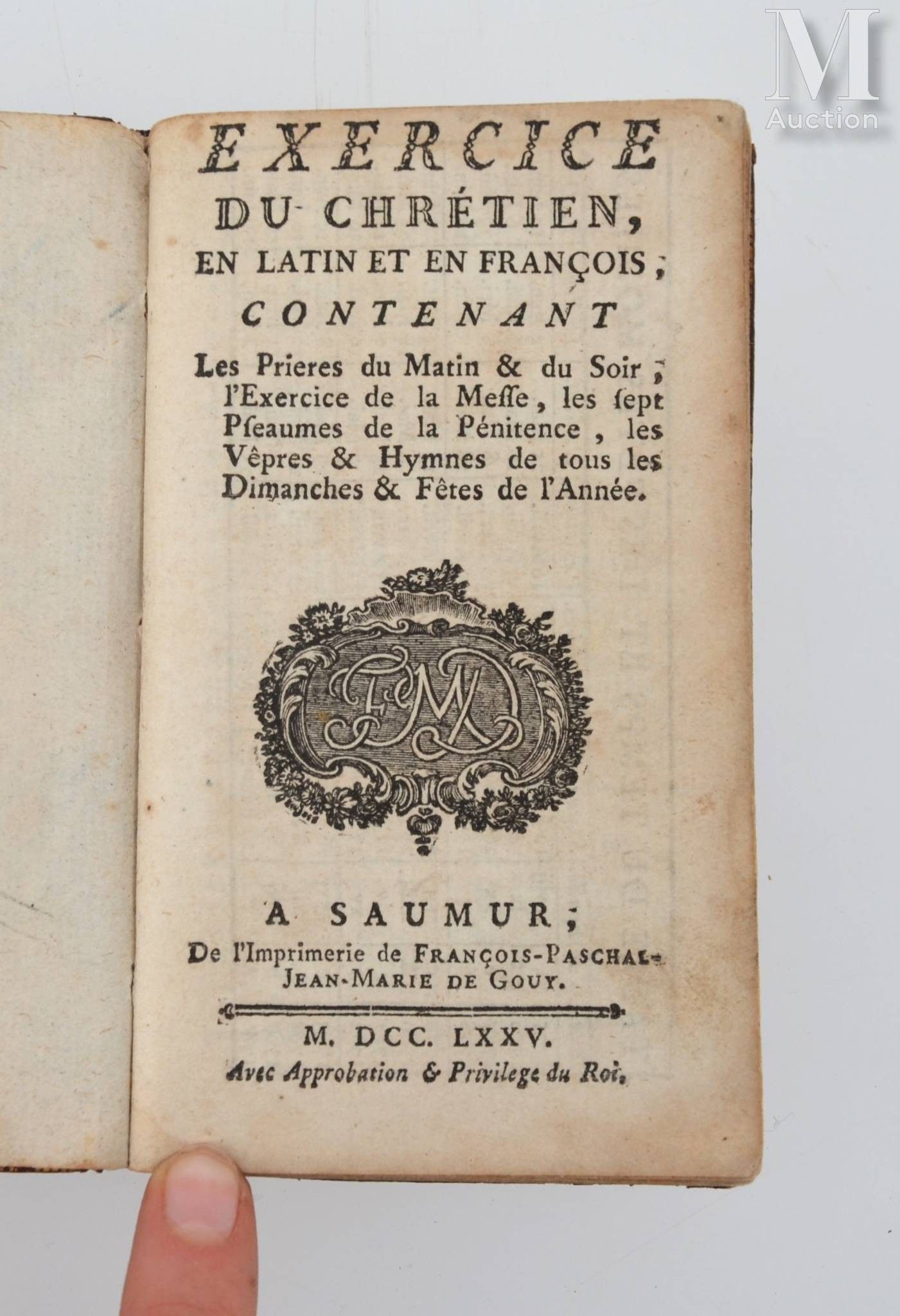 Cute letters. Exercise of the Christian, in Latin and French. Saumur, F. De Gouy, 1775. In-12, red morocco, decorative plate, in the centre a medallion and Amour with a crowned dolphin stamped on a piece of green morocco, gilt edges (Binding of the period).