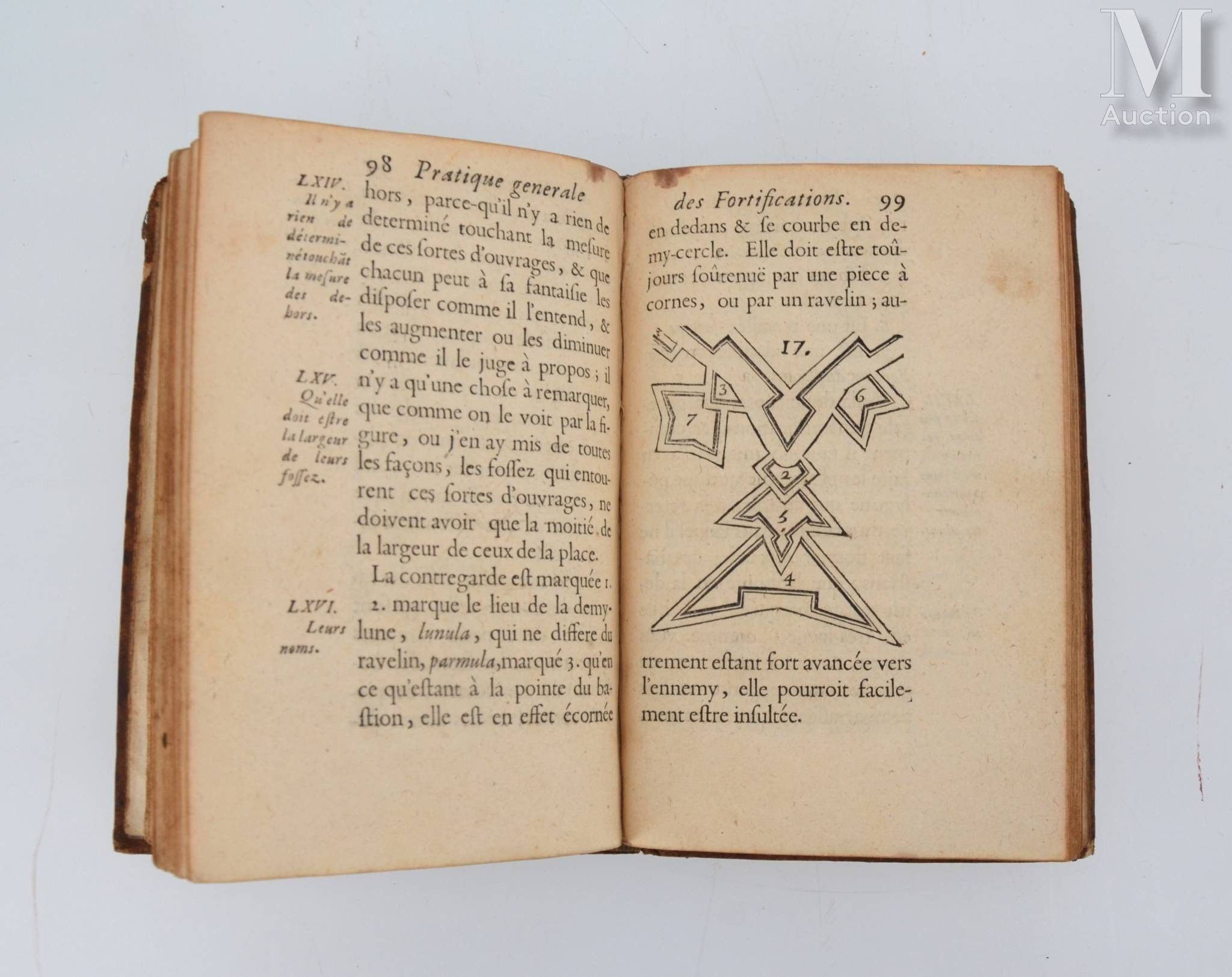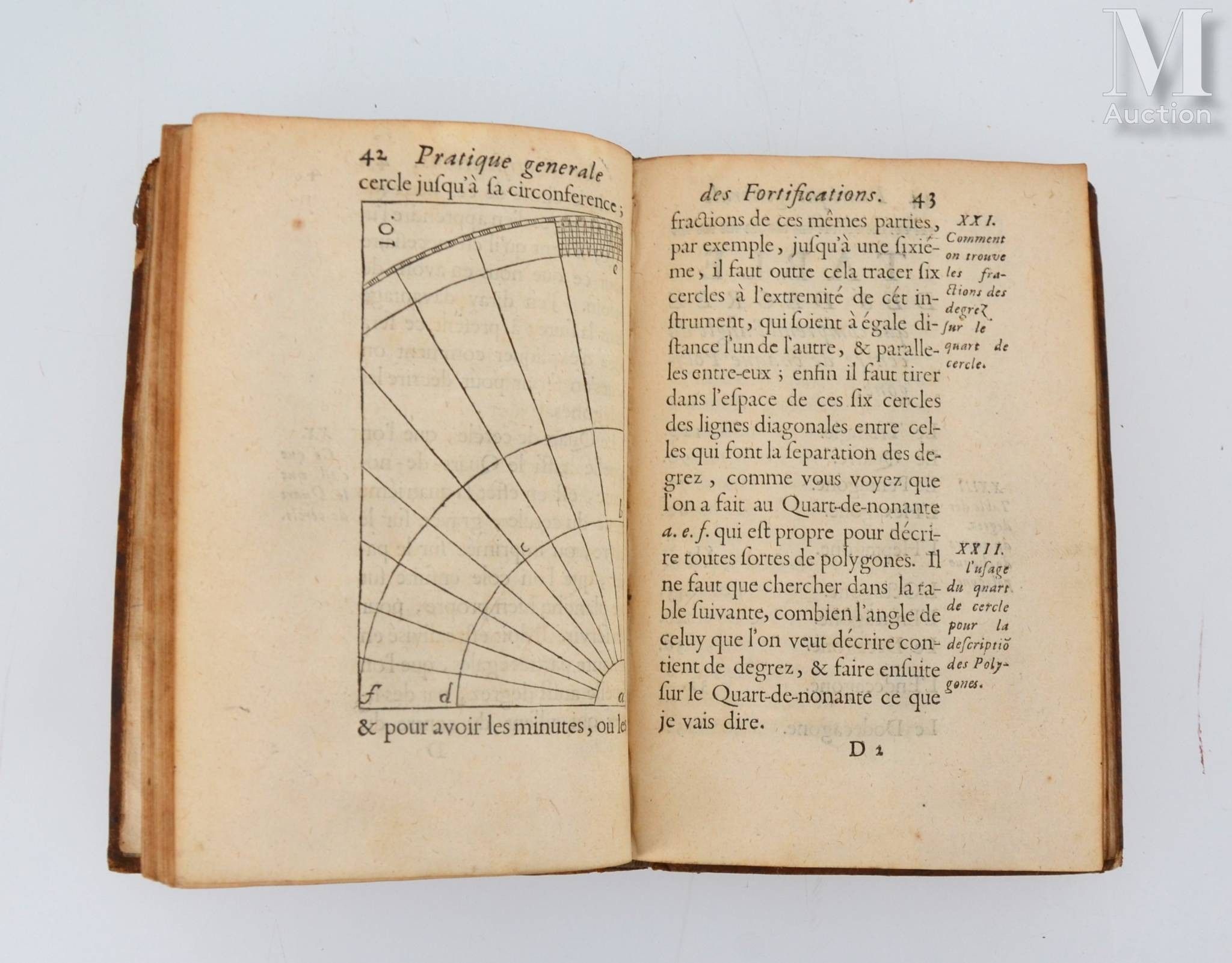 Pratique générale des fortifications pour les tracer sur le papier & sur le terrain. Moulins, Claude Vernoy, 1679. In-8, fawn-coloured basane, gilt fan decoration on covers (Binding of the period).