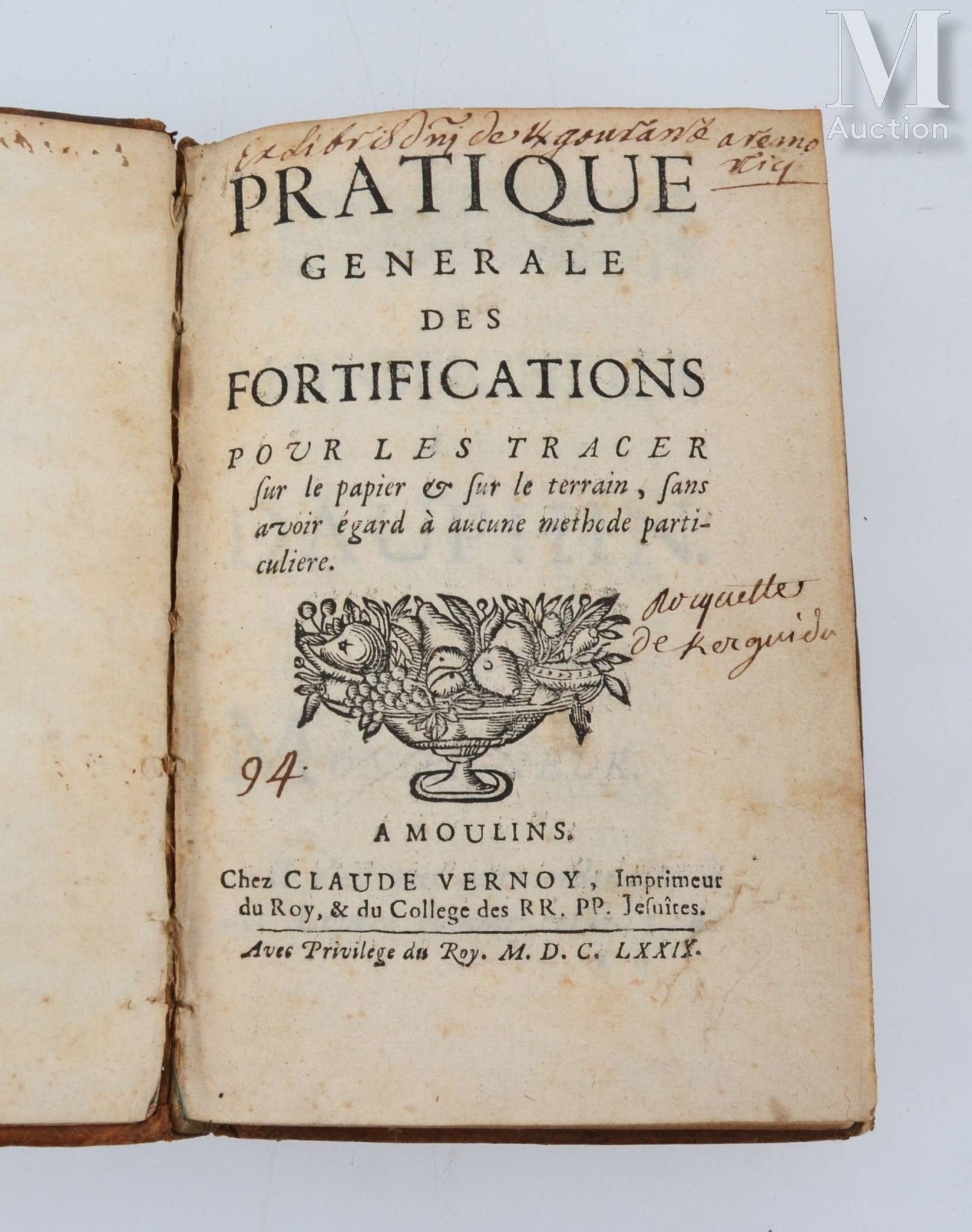 Interesting treatise on fortifications by Jesuit Father Ango, printed by Claude Vernoy, printer to the King and the Jesuit College of Moulins.