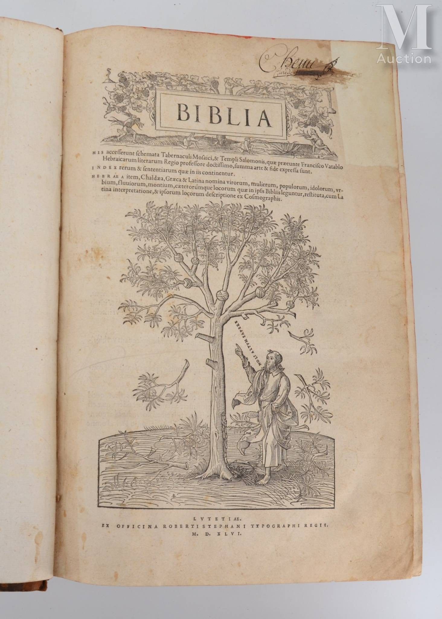 Biblia sacra latina. Hebroea, chaldoea, groeca & latina. Paris, Robert Estienne, 1546. In-folio, marbled calf, spine decorated, red edges (18th century binding).