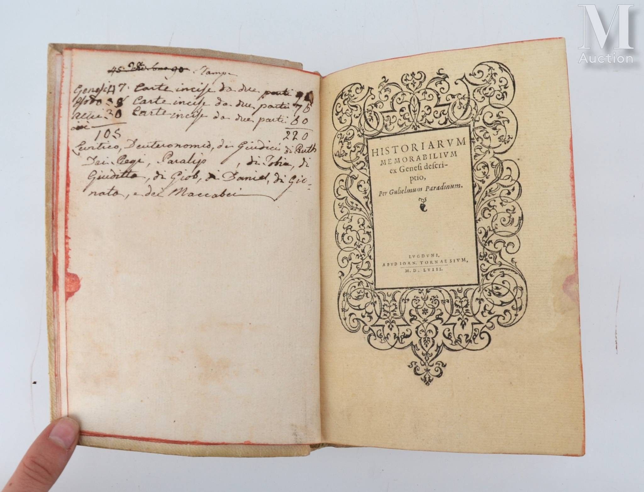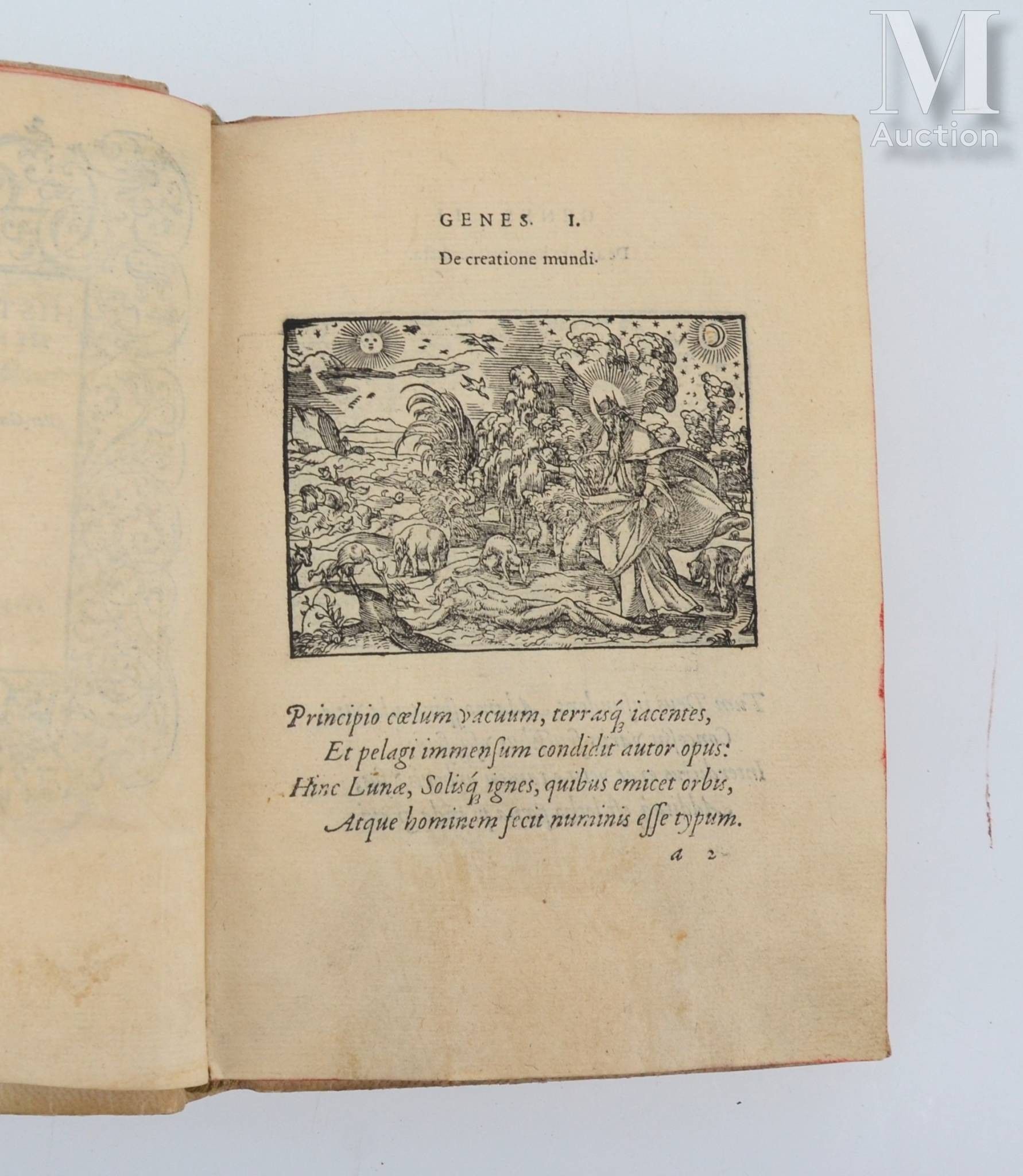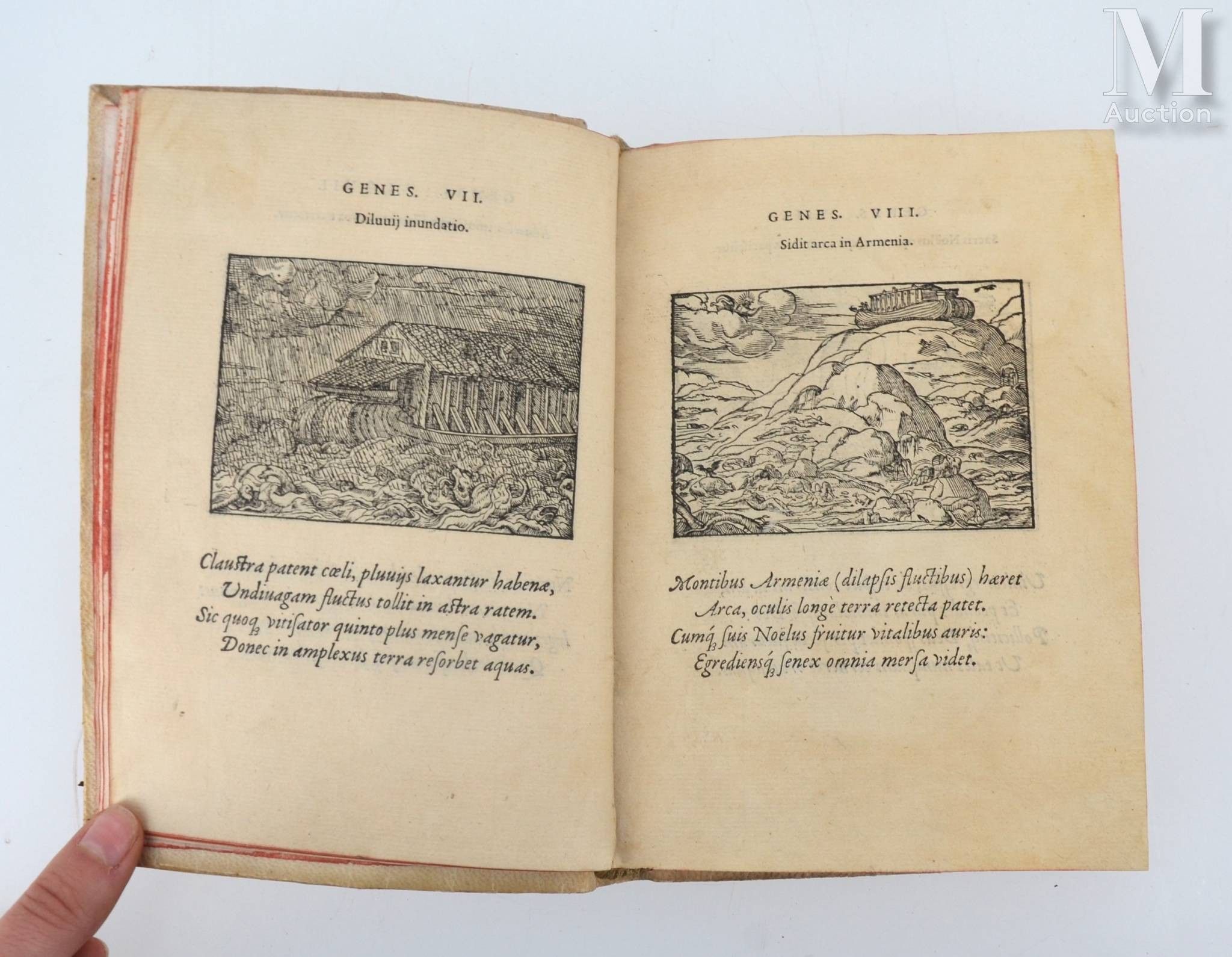 Historiarum memorabilium ex Genesi descriptio. - Historiarum memorabilium ex Exodo. Lyon, Jean de Tournes, 1558. 2 parts in one volume in-8, old soft vellum, red edges (19th century binding).