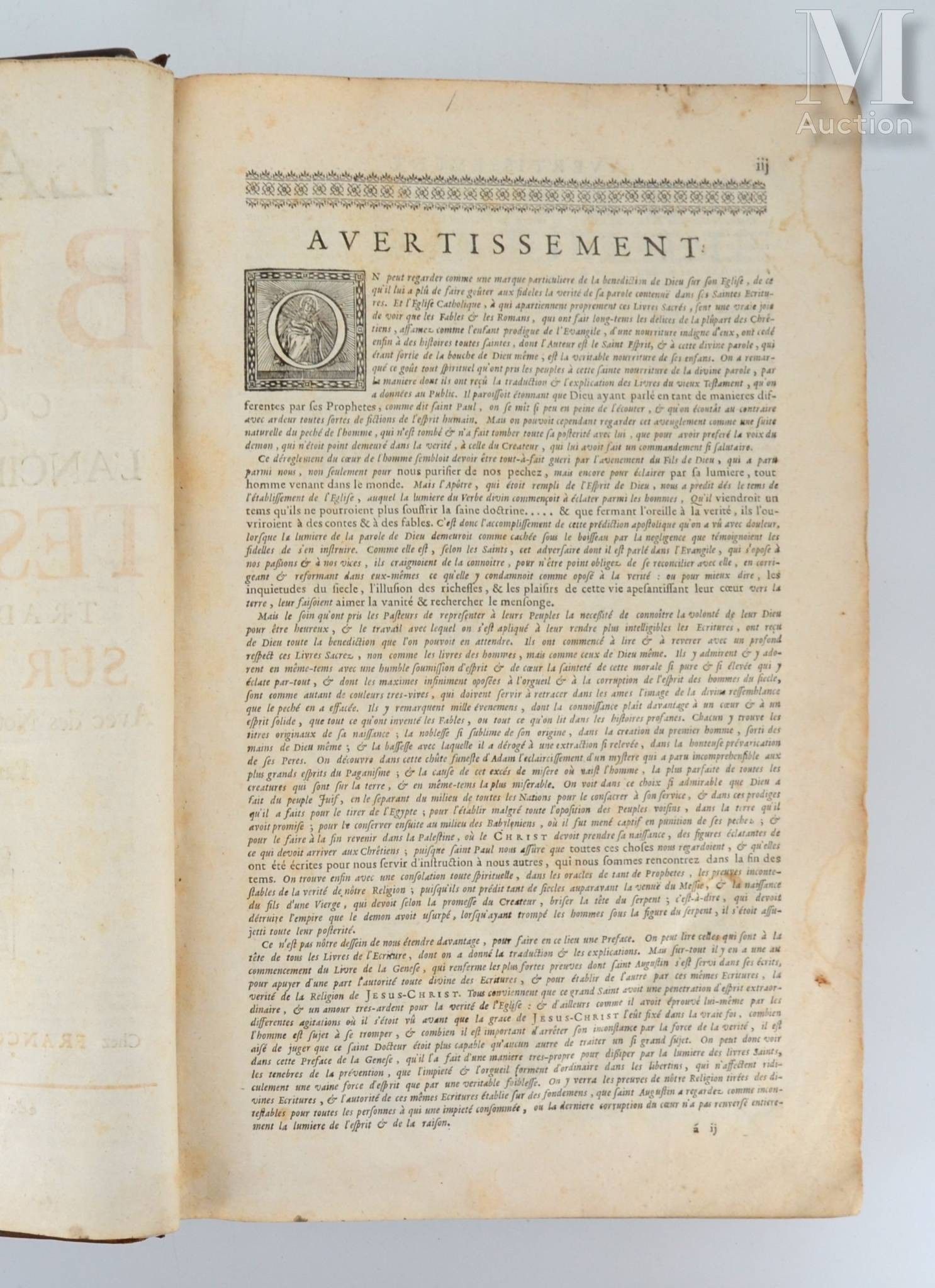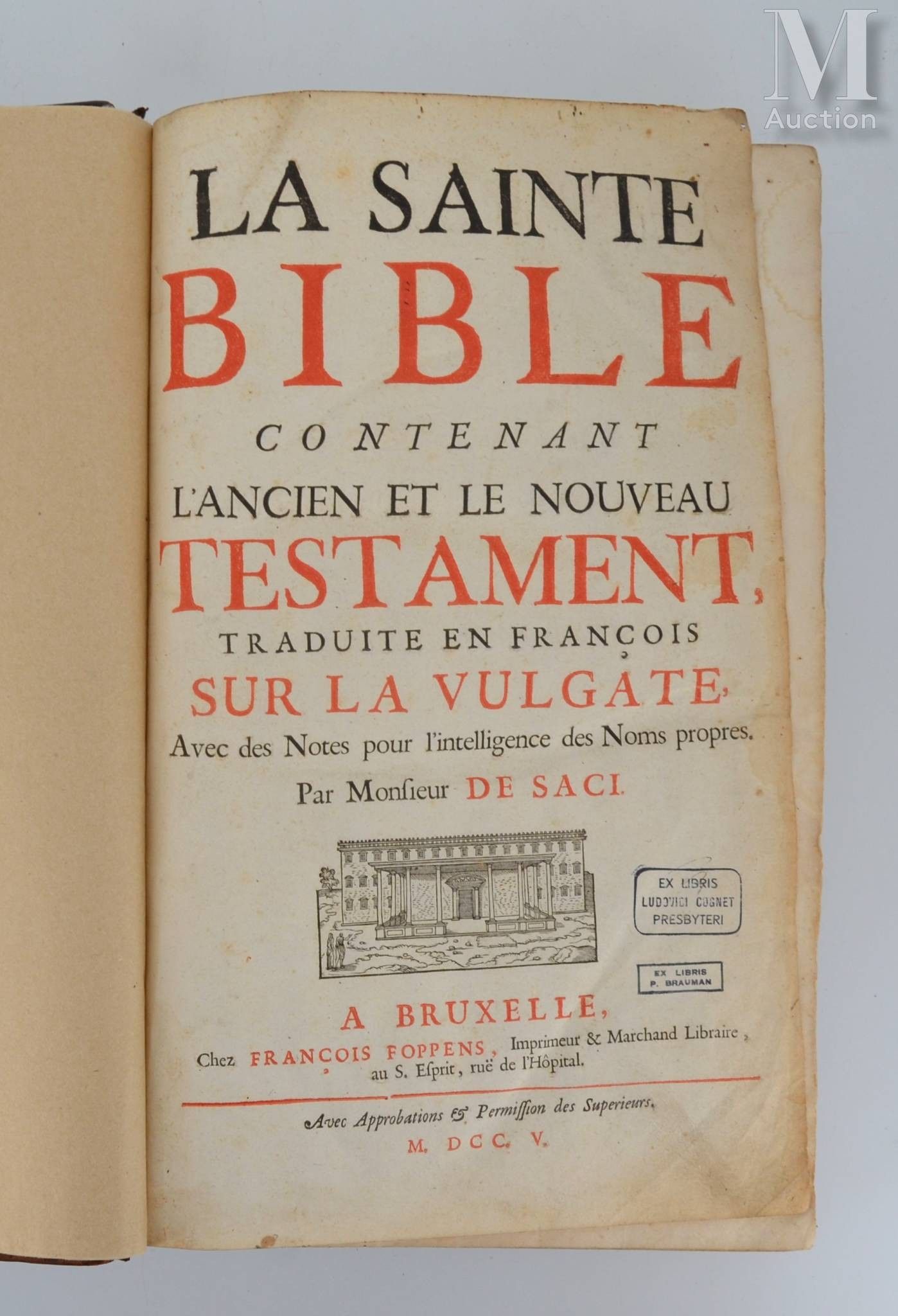 The Holy Bible containing the Old and New Testaments. Brussels, Foppens, 1705. In-folio, marbled calf, spine decorated (Binding of the period).