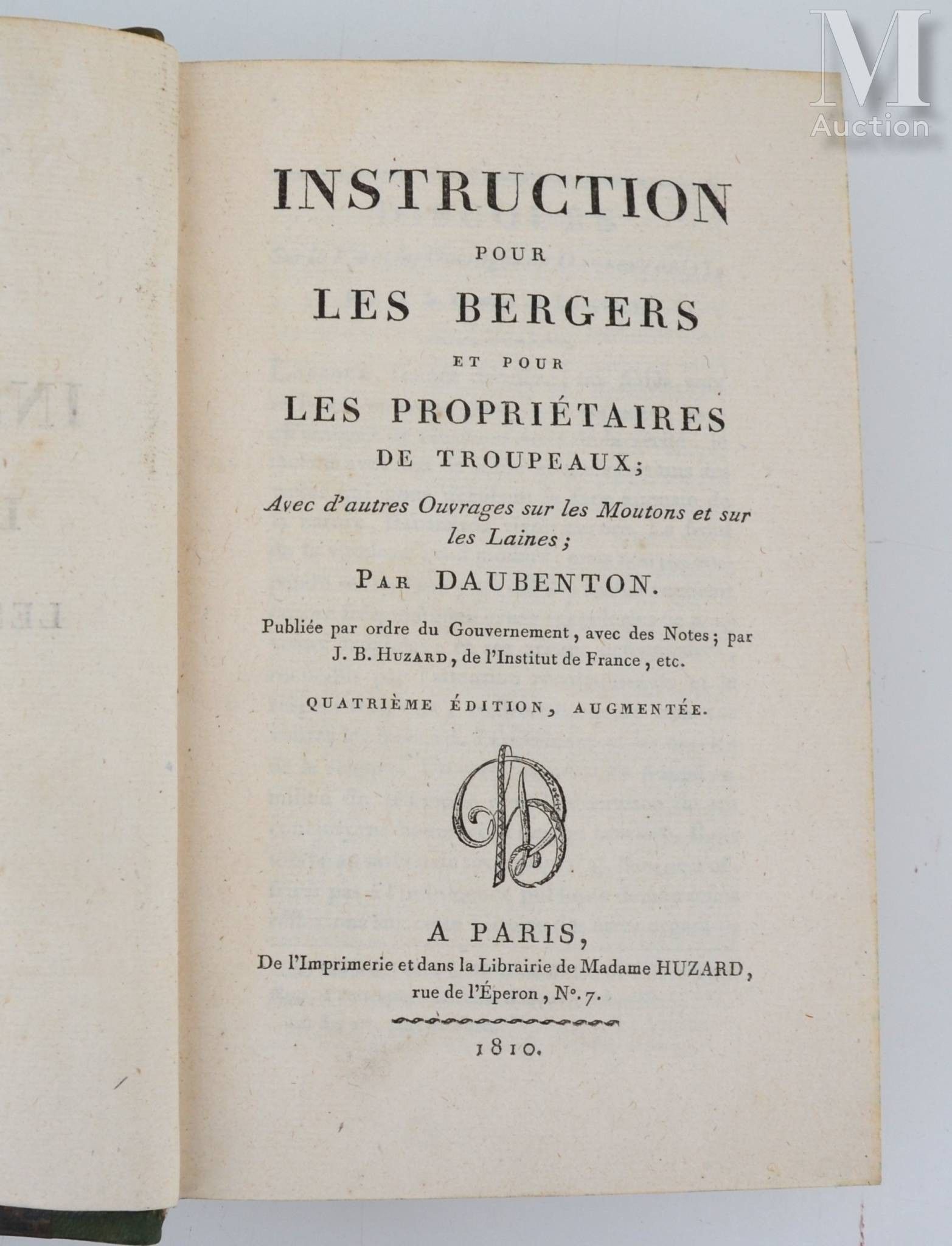Instruction for shepherds and herd owners. Paris, Huzard, 1810. In-8, green half-basin, smooth spine decorated (Binding of the period).