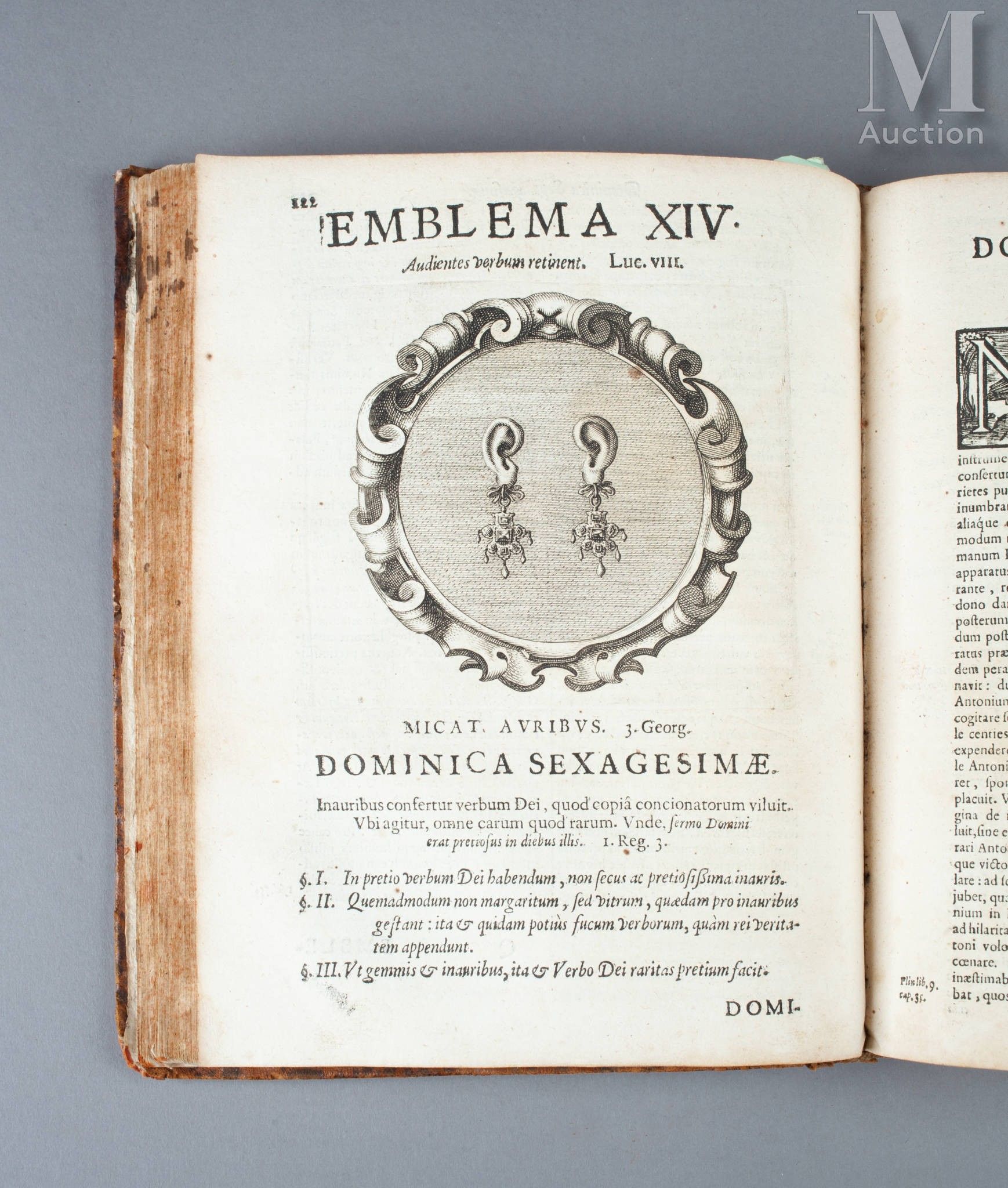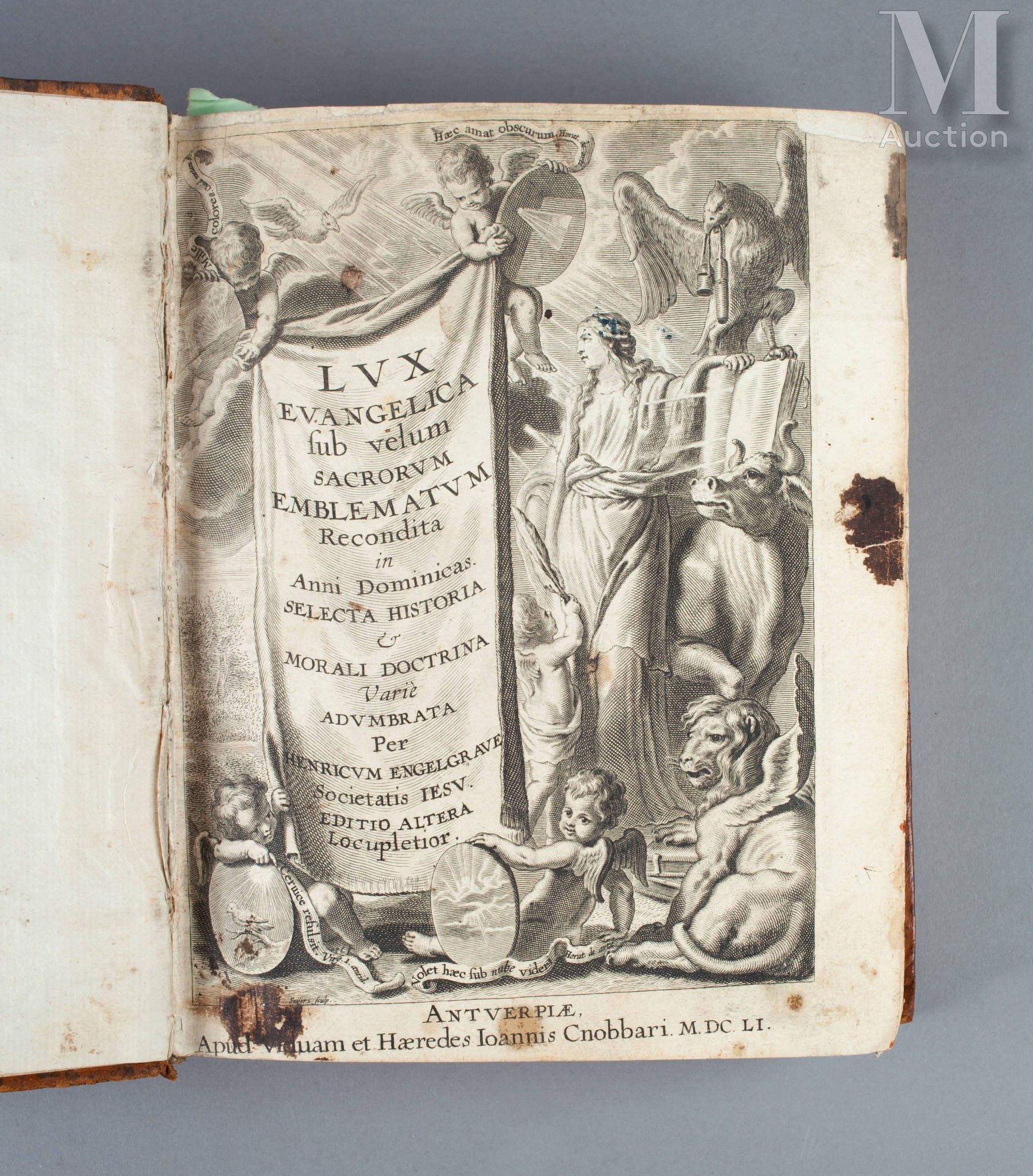 Lux Evangelica sub velum sacrorum emblematum. Antwerp, Jan Cnobbar's widow and heirs, 1651. In-4, marbled basane, gilt fillet, ornate spine, red title page, red speckled edges (Binding of the period).