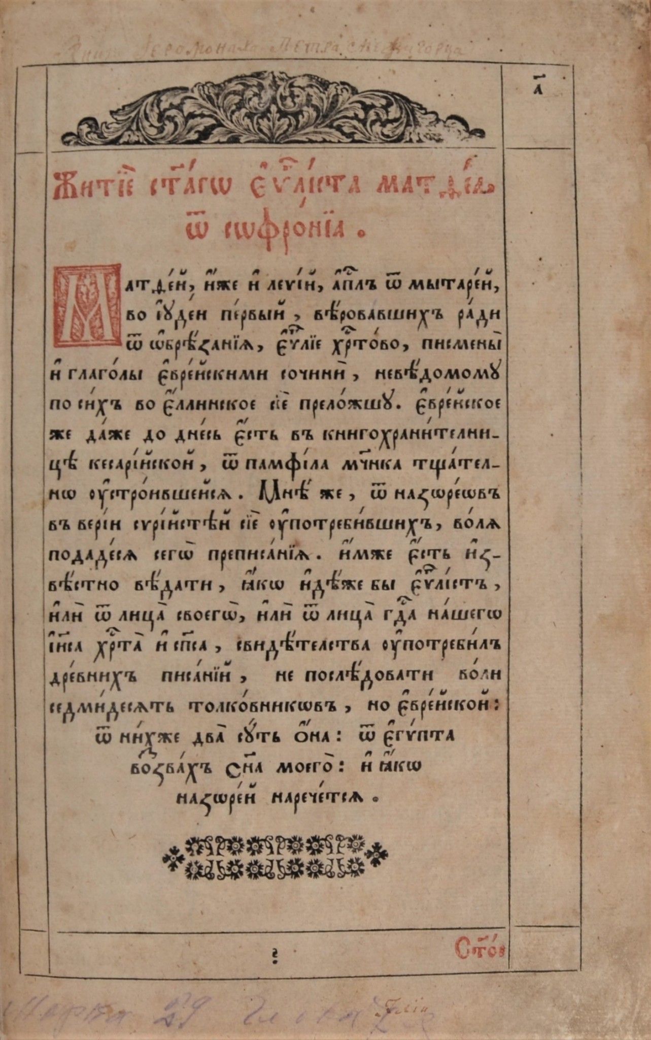 GOSPEL. Holy Gospel in Slavonic (?). S.l.n.d. [late 16th cen…