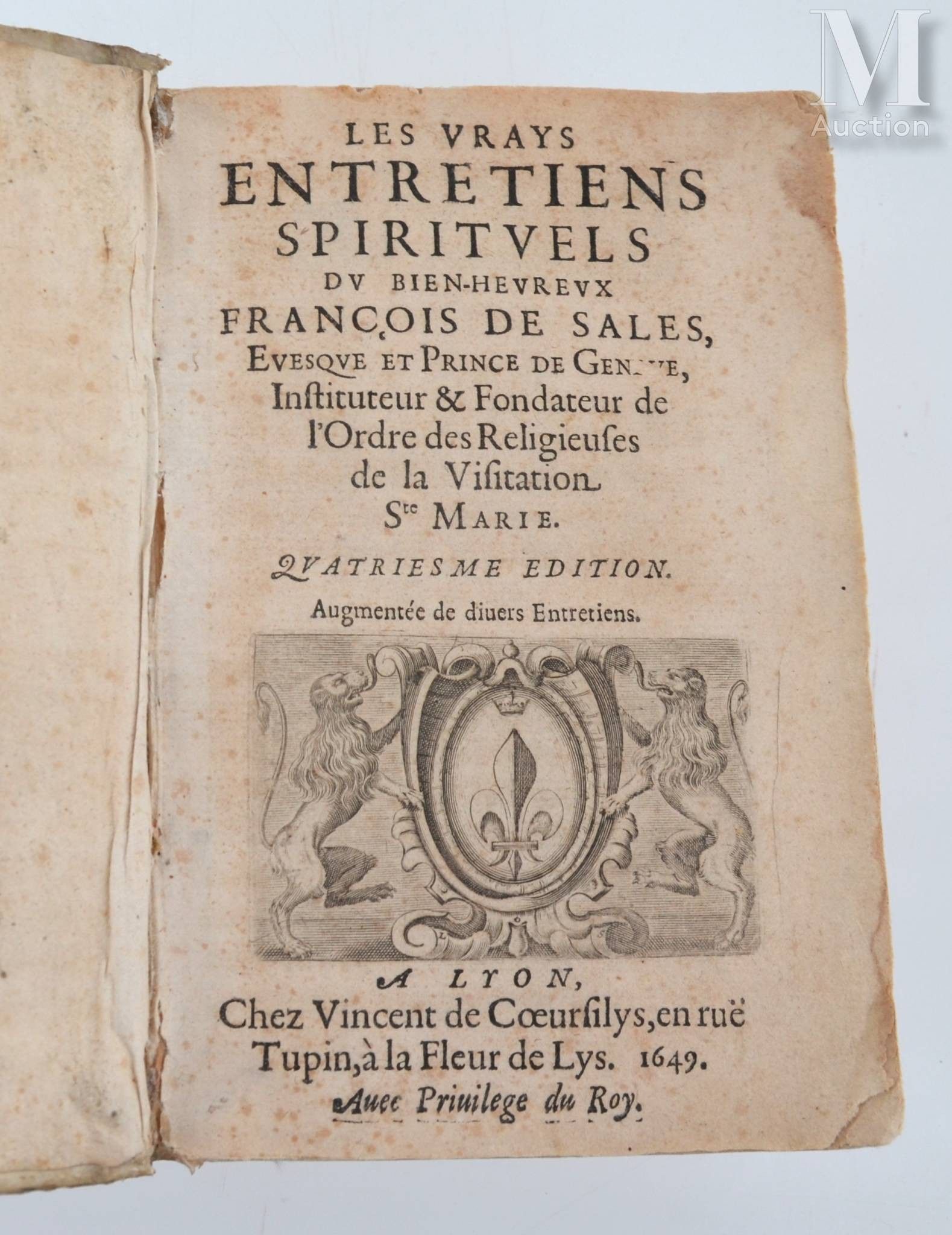 Les Vrays entretiens spirituels. Quatrième édition. Lyon, Vincent de Coeursilly, 1649. Large volume in-8, contemporary vellum.
