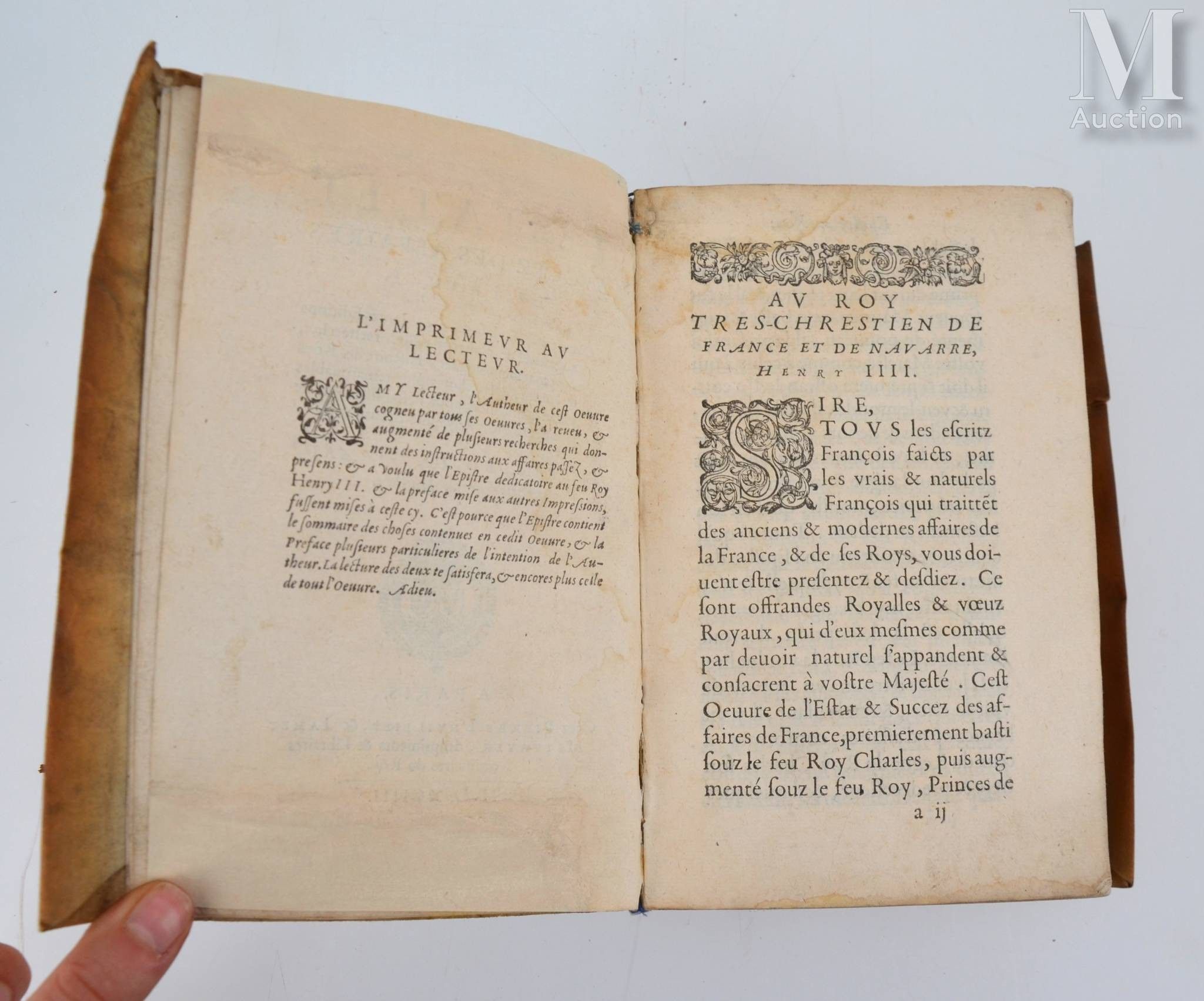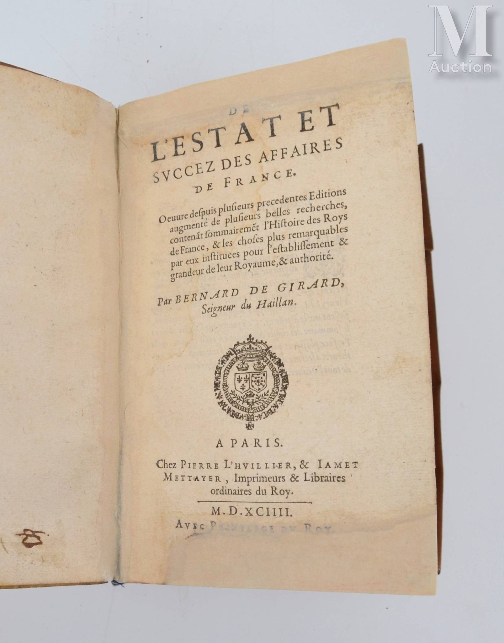 De l'Estat et succez des affaires de France. Paris, Pierre L'Huillier & Jamet Mettayer, 1594. In-8, supple vellum over boards, title in ink on the spine (contemporary binding).