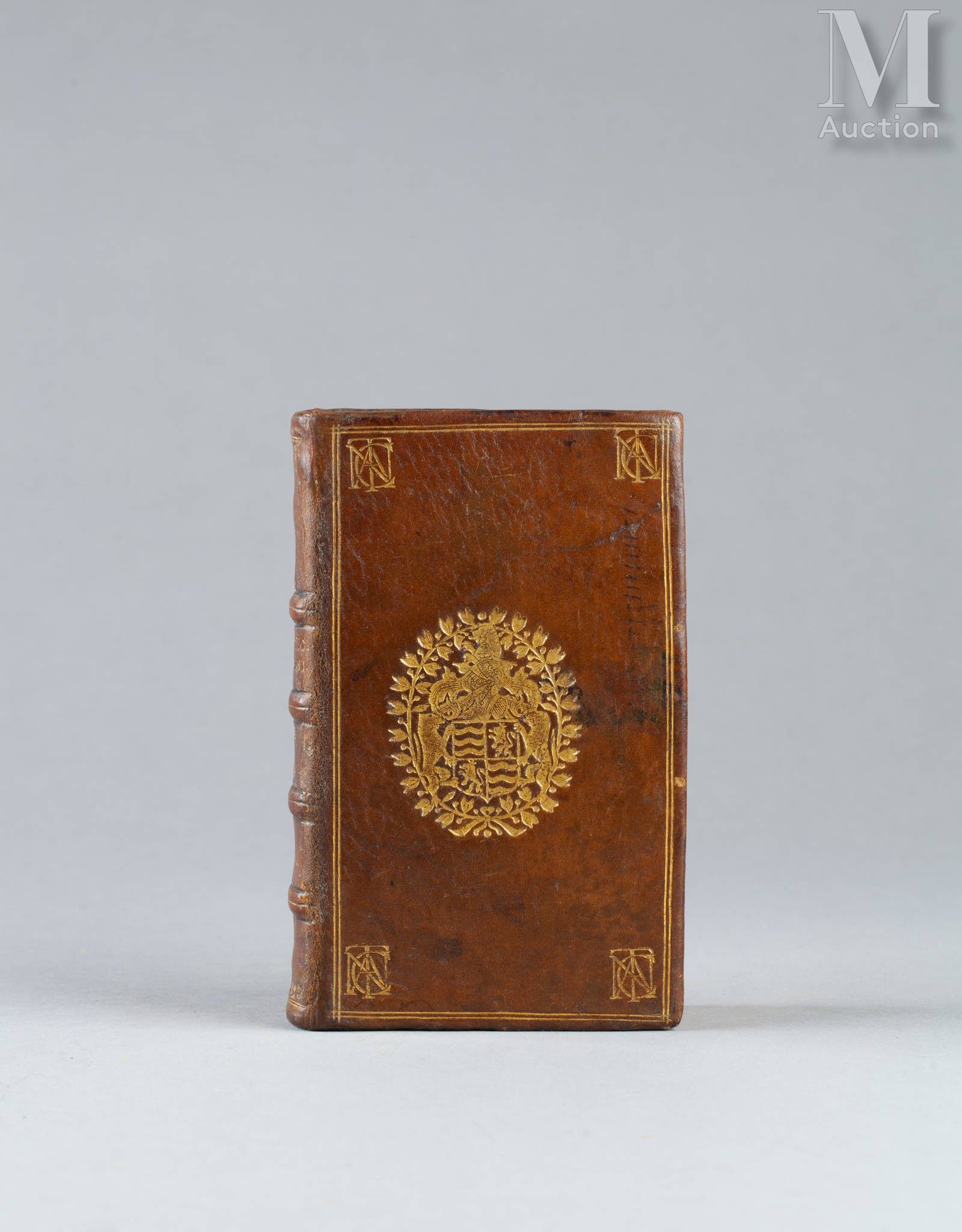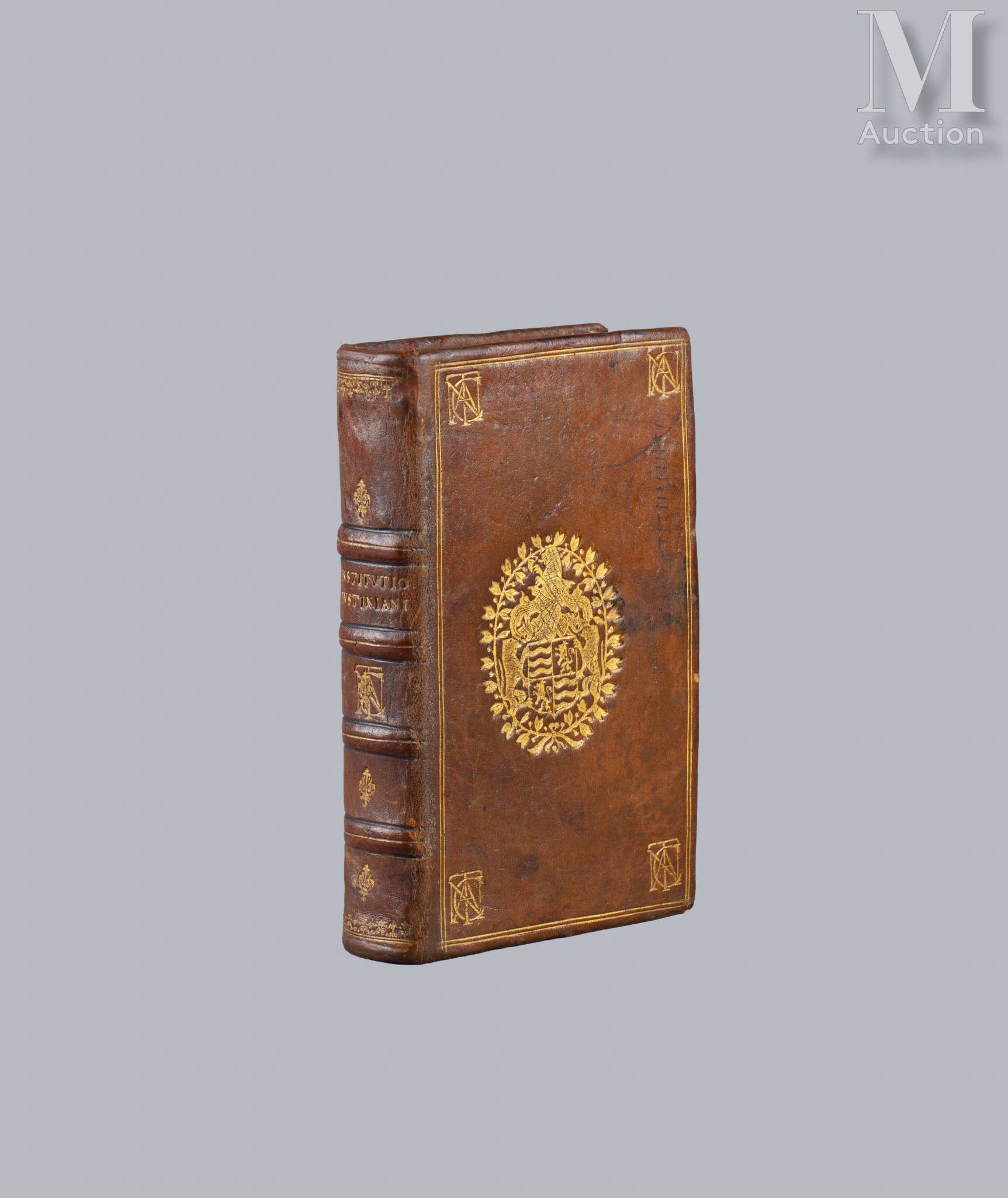 Institutiones iuris civilis. S.l. [Geneva, Simon Du Bosc & Guillaume Guéroult], 1555. In-8, olive morocco, double fillet, coat of arms in the centre and numeral in the corners, spine decorated, gilt edges (Binding of the period).
