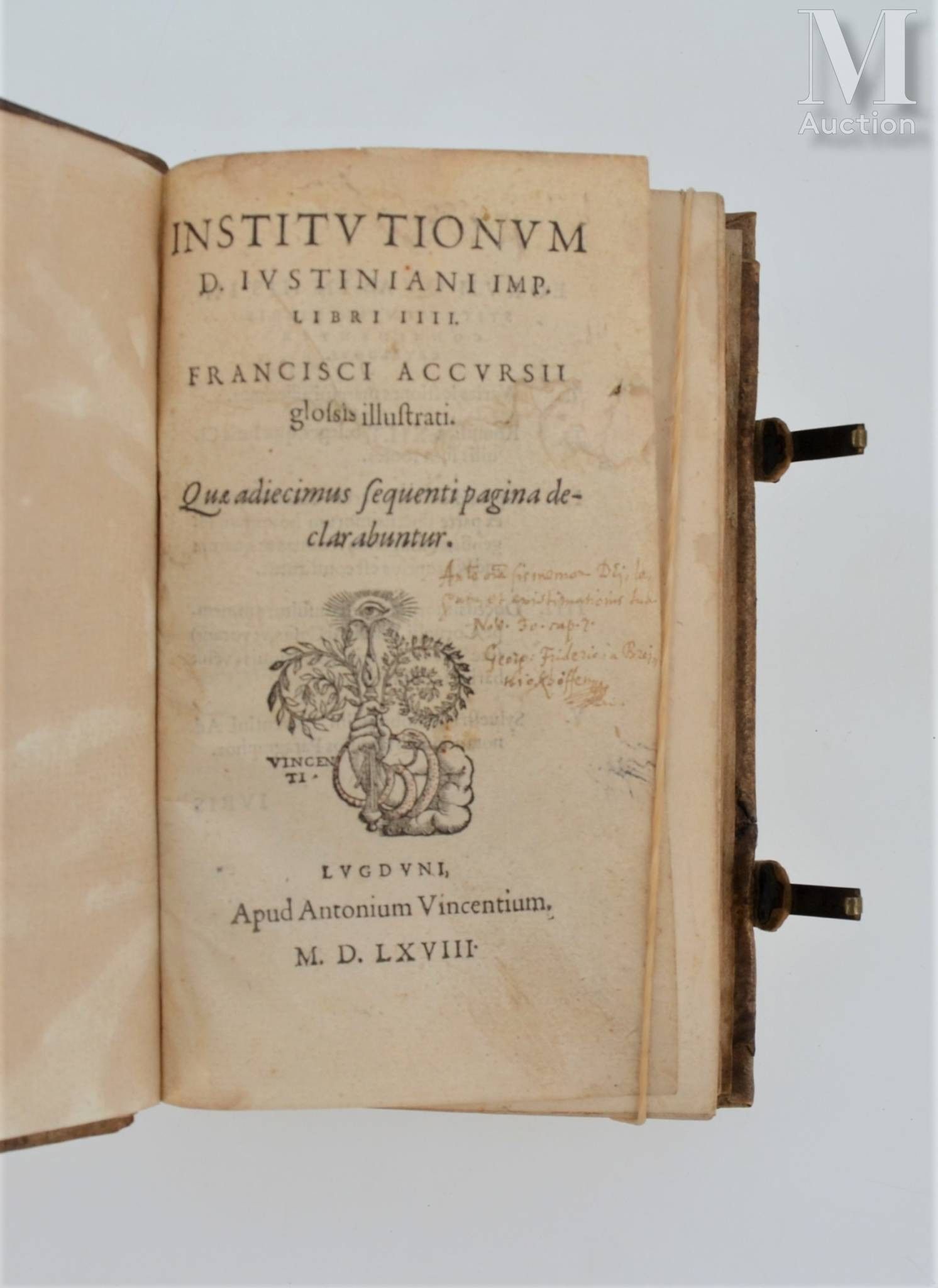 Premium JUSTINIAN. Institutionum libri IIII. Lyon, Antoine Vincent, …