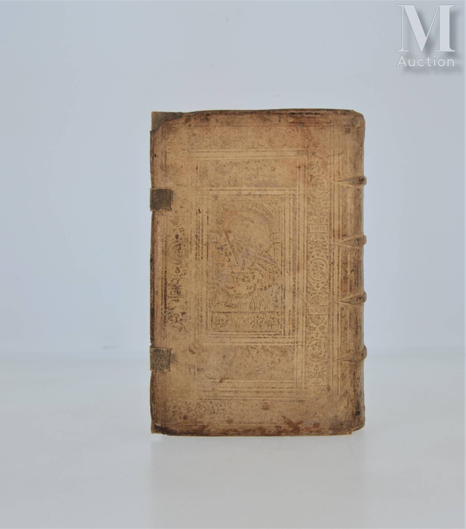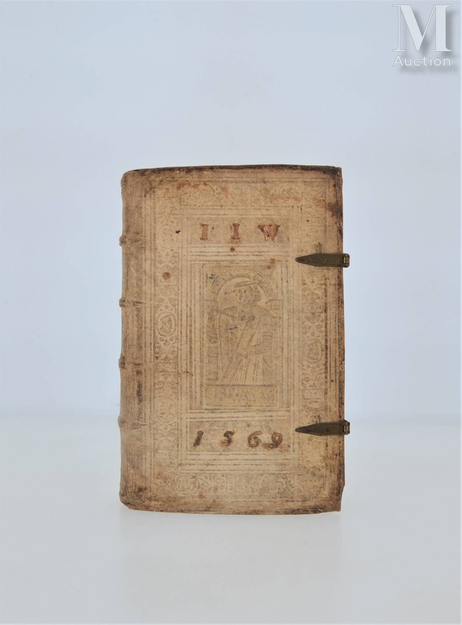 Institutionum libri IIII. Lyon, Antoine Vincent, 1568. In-8, cold-stamped saddle-skin, filleting and roulette with allegorical portraits forming a rectangular panel, portrait of Lucretia stabbing herself on the first board and personified allegory of Justice on the second, initials IIW and date 1569 stamped on the first board, clasps, title in ink on the side edge (Binding of the period).