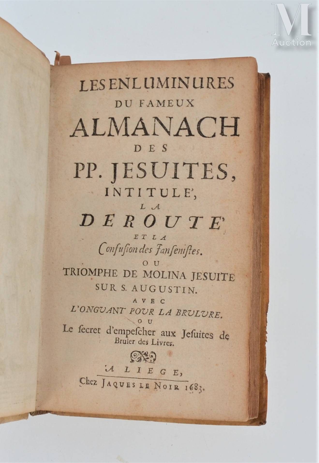 Illuminations of the famous almanac of the PP. Jésuites, intitulé, la Déroute et la confusion des Jansénistes. Liège, Jacques Le Noir, 1683. 3 parts in one volume in-12, stiff vellum, smooth spine (contemporary binding).
