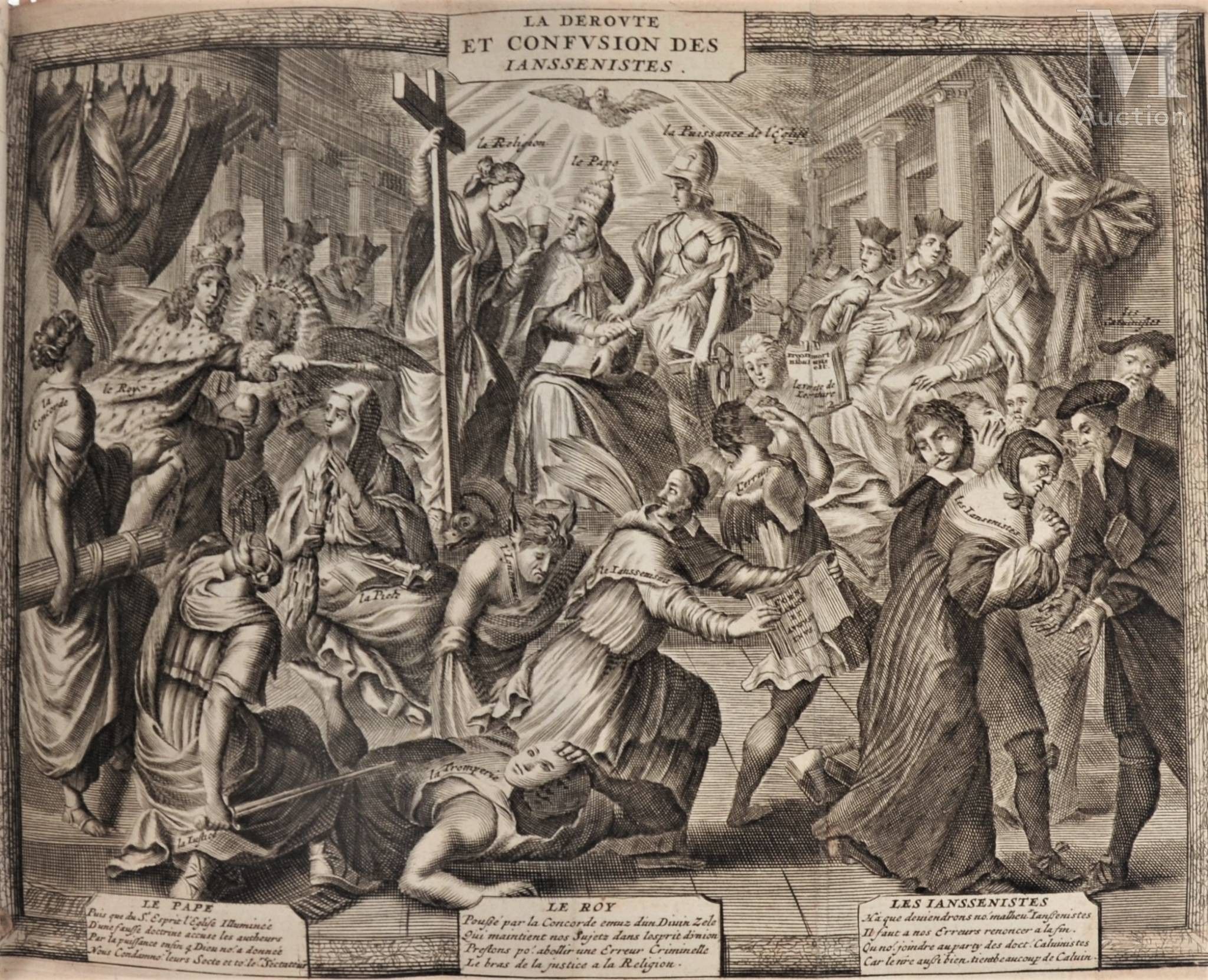 Copy in contemporary vellum, complete with 2 curious copper engravings, one fold-out illustrating the Déroute et confusion des Jansénistes and the other depicting Jesuits burning books.