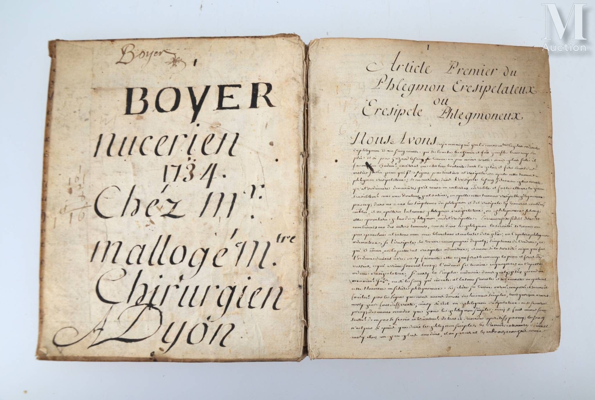 Handwritten note on back cover: Boyer nucerien 1734 chez Mr Mallogé Mtre chirurgien à Dijon.
